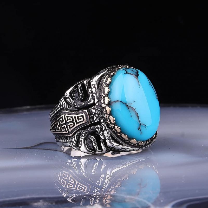 Мужской перстень из серебра 925 пробы с камнем на выбор: Оникс, бирюза, цирконий