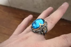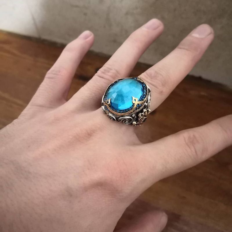 Перстень из черненного серебра 925 пробы ручной работы с камнем под заказ