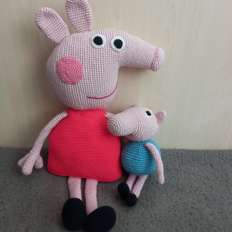 Большая свинка Пеппа и маленький братик Джорж связаны крючком. Наполнитель синтепон. Цена за двоих.