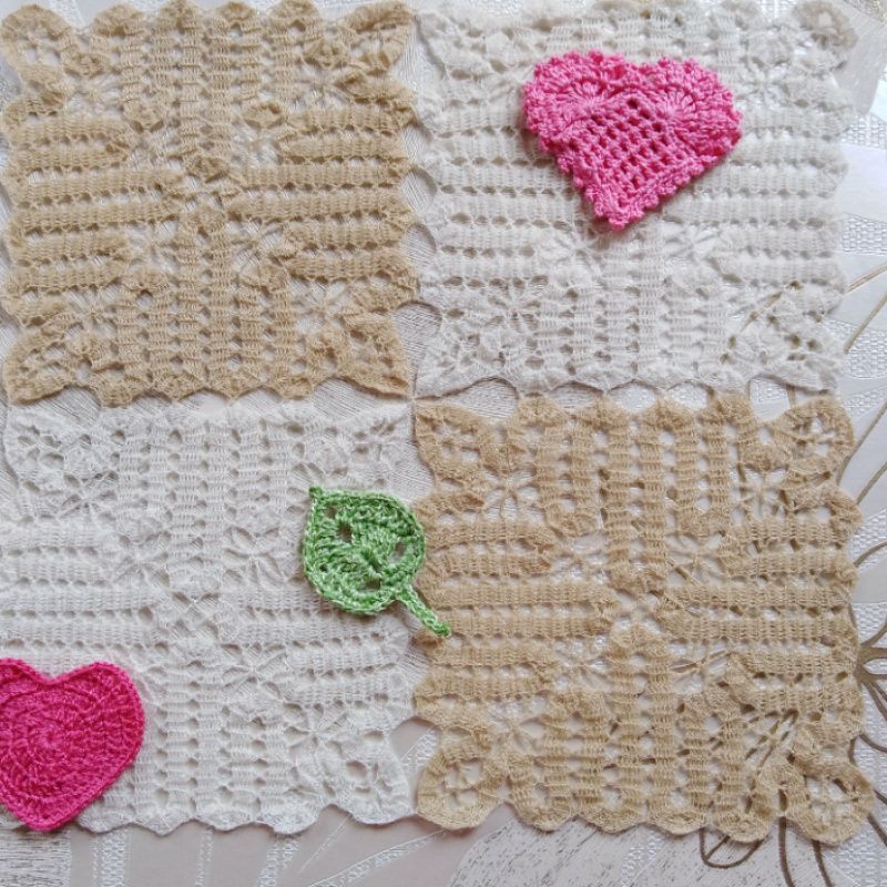Ажурная салфетка на фото состоит из 4 элементов. Можно увеличить количество элементов, изменить форму. Также можно изготовить в форме дорожки. Размер изделия зависит от количества элементов и товшины пряжи. На фото салфетка выполнена из тончайших швейных ниток. Размер элемента 14,5 х 14,5 см