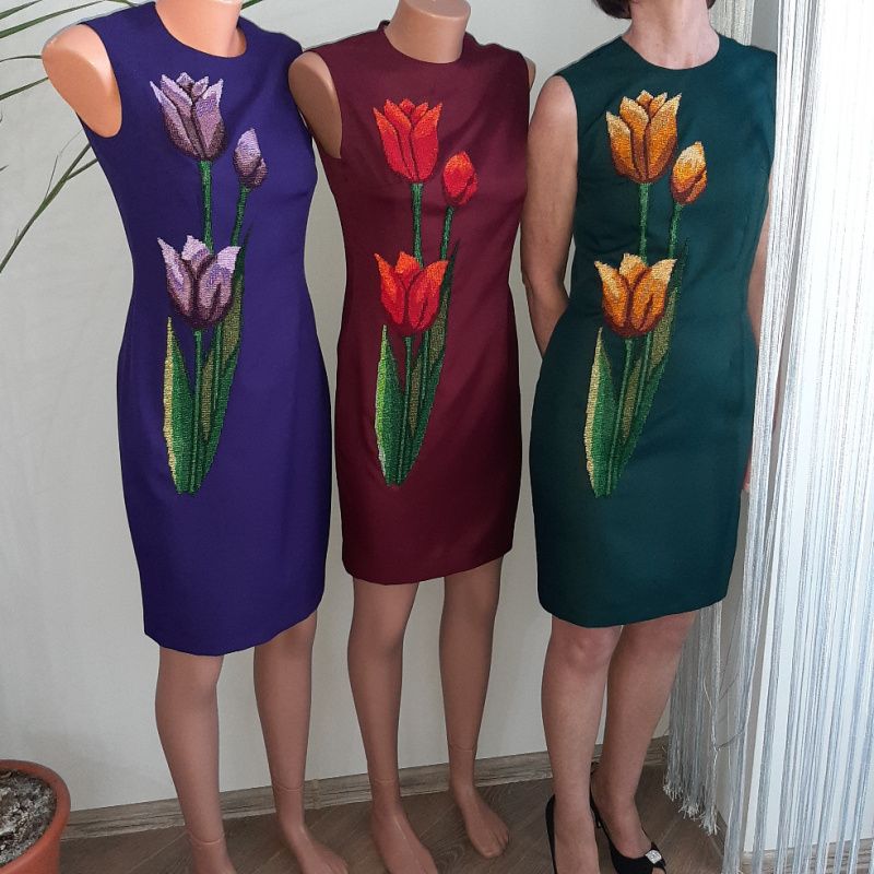 Классические коктейльные платья вышитые бисером. Все три платья одного размера, только немножко отличается длина. Материалы: бисер 1 сорт Чехия, габардин - (100% высококачественное синтетическое волокно. Ткань легкая, приятная на ощупь, долговечна, не теряет цвет и форму). Размер - S (EU-38) (UA-44) Обхват груди - 88 см Обхват талии - 67 см Обхват бедер - 96 см Длина изделия: сиреневое - 92 см зеленый - 87 см. Вышивка - 15 X 61 см Нить , которой я вышиваю - сверхпрочная и выдержит все нагрузки. Рисунок расположен таким образом, что позволяет сократить платье. А запас подгиба позволит удлинить изделие. Замечательное легкое коктейльное платье подойдет для вечеринки, похода в театр или в гости к друзьям. Классический крой изделия подчеркнет Вашу фигуру с выгодной стороны. Длина изделия позволяет чувствовать себя комфортно в любой ситуации. Авторская ручная вышивка, украшающая платье, сделает Ваш образ неповторимым. Отсутствие узелков и пересечения нити на изнаночной стороне вышивки, говорит о высоком качестве работы и высокую степень квалификации мастера. Политика возврата, Учитывая, что возвращение несет дополнительные финансовые потери, будьте внимательны при заказе. Обязательно перемеряйте себя внимательно !!! Но если платье имеет проблемы с качеством, пожалуйста, свяжитесь с нами, я решу это для вас. Примечание: Из-за разницы между дисплеем и светом, будет небольшая разница в цвете, это нормально. Если у вас есть еще вопросы, пожалуйста, свяжитесь с нами в любое время, мы ответим вам и вышлем дополнительные фото, спасибо за Вашу поддержку. Приглашаю посетить мой магазин, есть еще много всего интересного.