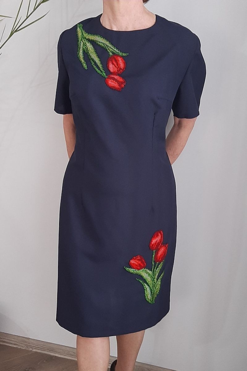 Нить, которой я вышиваю - сверхпрочная и выдержит все нагрузки. Рисунок расположен таким образом, что позволяет укоротить платье. А запас подгиба позволит удлинить изделие. Замечательное легкое коктельное платье подойдет для вечеринки, похода в театр или в гости к друзьям. Классический крой изделия подчеркнет Вашу фигуру с выгодной стороны. Длина изделия позволяет чувствовать себя комфортно в любой ситуации. Авторская ручная вышивка, украшающая платье, сделает Ваш образ неповторимым. Отсутствие узелков и пересечения нити на изнаночной стороне вышивки, говорит о высоком качестве работы и высокую степень квалификации мастера.