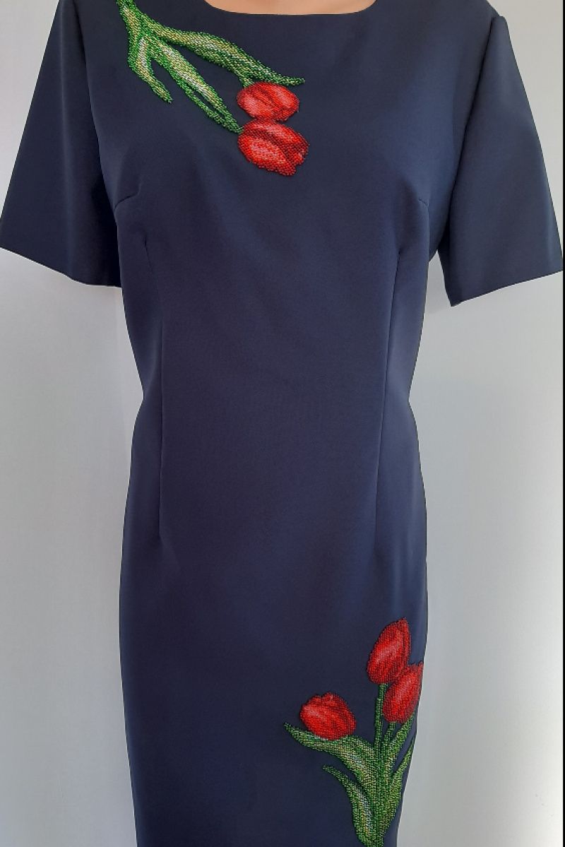 Классическое коктейльное платье вышито бисером. Материалы: бисер 1 сорт Чехия, габардин - (100% высококачественное синтетическое волокно. Ткань легкая, приятная на ощупь, долговечна, не теряет цвет и форму).