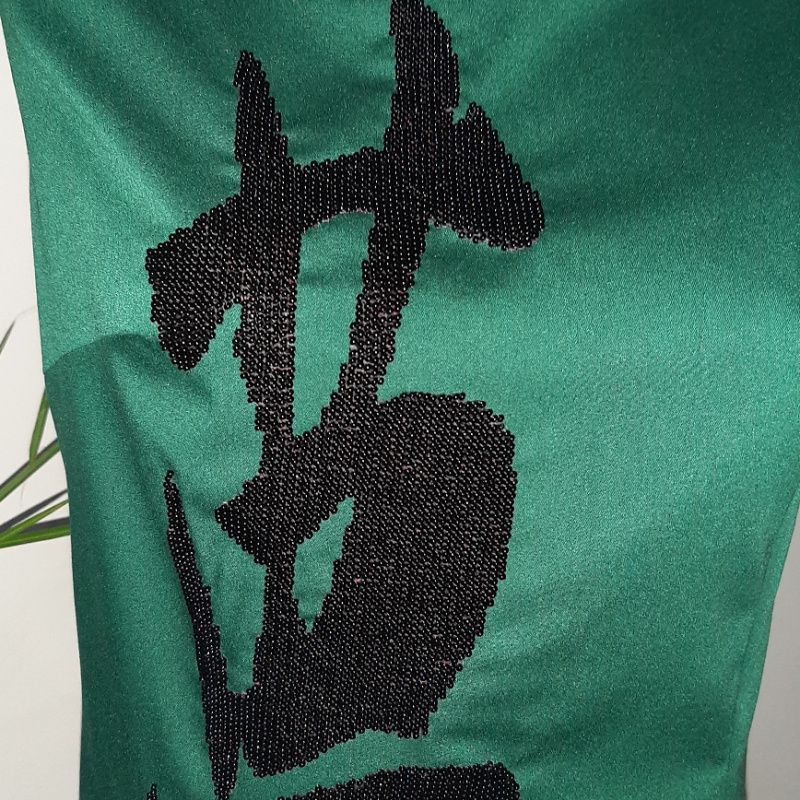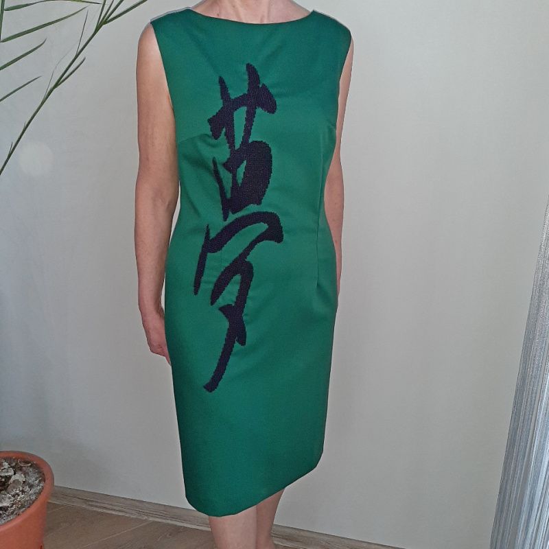 Вы готовы стать женщиной мечты? Тогда это платье для Вас ;-) Платье - мечта (иероглиф, который вышит на платье означает - мечта). Черный бисер прекрасно оттеняет насыщенный темно-зеленый цвет ткани. Классический крой платья визуально вытягивает силуэт, а авторская ручная вышивка делает платье эксклюзивным. Такое платье, как говорится "на все случаи в жизни". Отсутствие узелков и пересечения нити на изнаночной стороне вышивки, говорит о высоком качестве работы и высокую степень квалификации мастера. Материалы: Чешский бисер 1 сорт, креп. Для индивидуального пошива предоставьте нам 20 рабочих дней. Сегодня в наличии: Размер - XL (EU-46) (UA-52) Объем груди - 104 см Обхват талии - 84 см Обхват бедер - 112 см Длина изделия - 95 см Вышивка - 12 X 56 см Политика возврата: Учитывая на то, что возвращение несет дополнительные финансовые потери, будьте внимательны при заказе. Обязательно перемеряйте себя внимательно !!! Но если платье имеет проблемы с качеством, пожалуйста, свяжитесь с нами, я решу это для вас. Примечание: Из-за разницы между дисплеем и светом, будет небольшая разница в цвете, это нормально. Если у вас есть еще вопросы, пожалуйста, свяжитесь с нами в любое время, мы ответим вам и вышлем дополнительные фото, спасибо за Вашу поддержку. Приглашаю посетить мой магазин, есть еще много всего интересного.