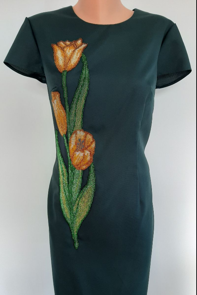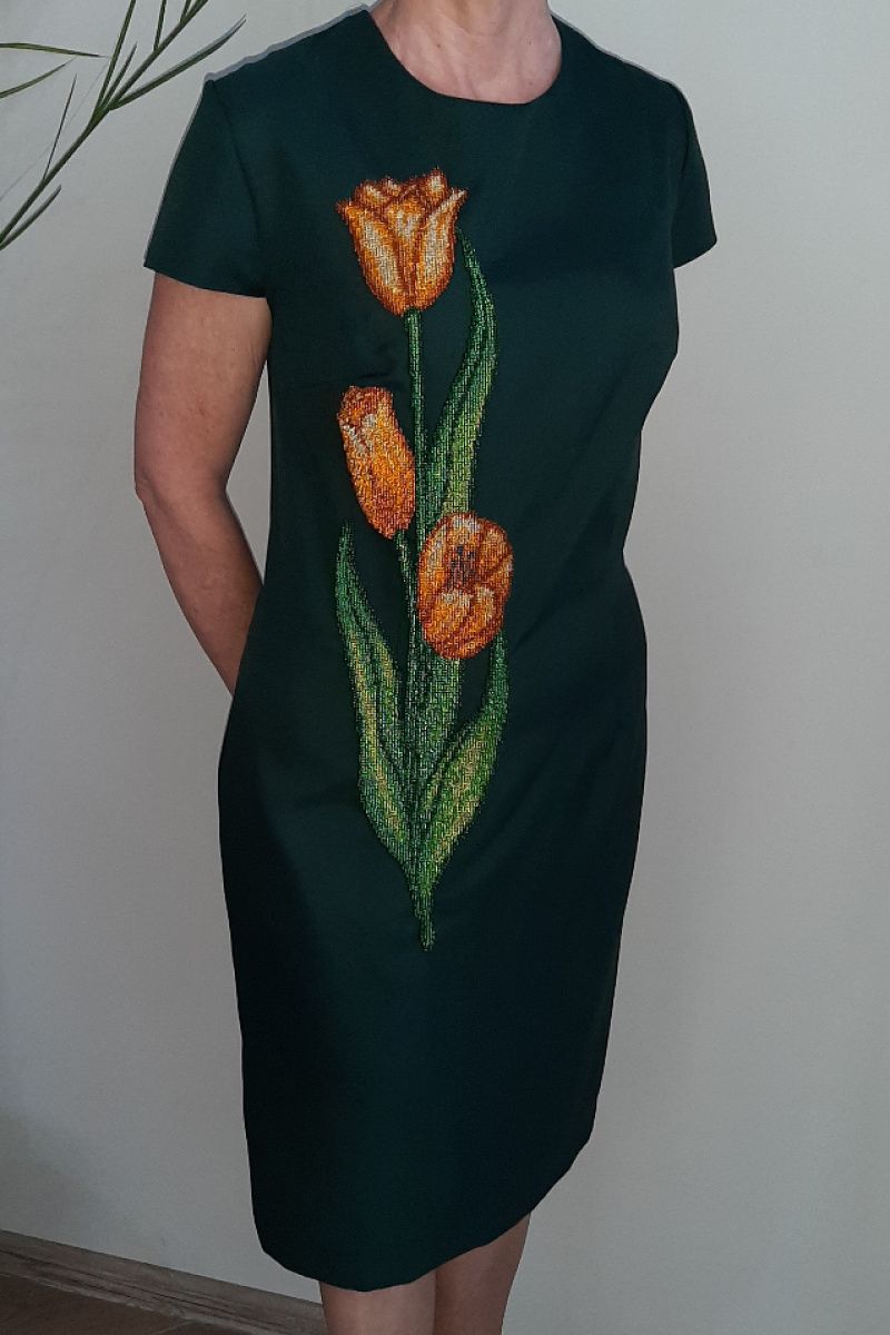 Классическое коктейльное платье вышитое бисером. Материалы: бисер 1 сорт Чехия, габардин - (100% высококачественное синтетическое волокно. Ткань легкая, приятная на ощупь, долговечна, не теряет цвет и форму). Размер - XL (EU-46) (UA-52) Обхват груди - 104 см Обхват талии - 84 см Обхват бедер - 112 см Длина изделия - 95 см Вышивка - 12 X 56 см Нить, которой я вышиваю - сверхпрочная и выдержит все нагрузки . Рисунок расположен таким образом, что позволяет сократить платье. А запас подгиба позволит удлинить изделие. Замечательное легкое коктейльное платье подойдет для вечеринки, похода в театр или в гости к друзьям. Классический крой изделия подчеркнет Вашу фигуру с выгодной стороны. Длина изделия позволяет чувствовать себя комфортно в любой ситуации. Авторская ручная вышивка, украшающая платье, сделает Ваш образ неповторимым. Отсутствие узелков и пересечения нити на изнаночной стороне вышивки, говорит о высоком качестве работы и высокую степень квалификации мастера. Политика возврата: Учитывая то, что возвращение несет дополнительные финансовые потери, будьте внимательны при заказе. Обязательно перемеряйте себя внимательно !!! Но если платье имеет проблемы с качеством, пожалуйста, свяжитесь с нами, я решу это для вас. Примечание: Из-за разницы между дисплеем и светом, будет небольшая разница в цвете, это нормально. Если у вас есть еще вопросы, пожалуйста, свяжитесь с нами в любое время, мы ответим вам и вышлем дополнительные фото, спасибо за Вашу поддержку. Приглашаю посетить мой магазин, есть еще много всего интересного.