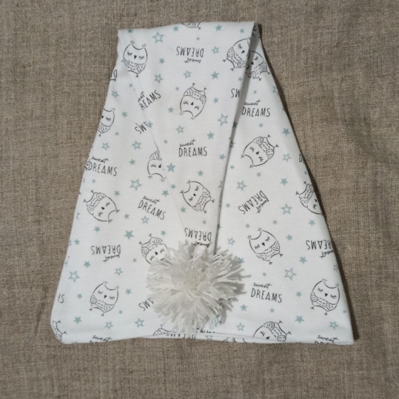 Колпак выполнен исключительно из качественных натуральных и гипоалергенных материалов: качественный хлопковый трикотаж двух видов, очень мягкий и уютный, он более тоненький чем его предшественник и поэтому подойдет для более теплых температур в помещении, что бы не было жарко. ))