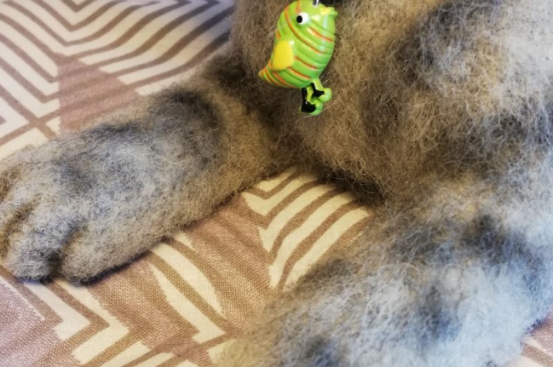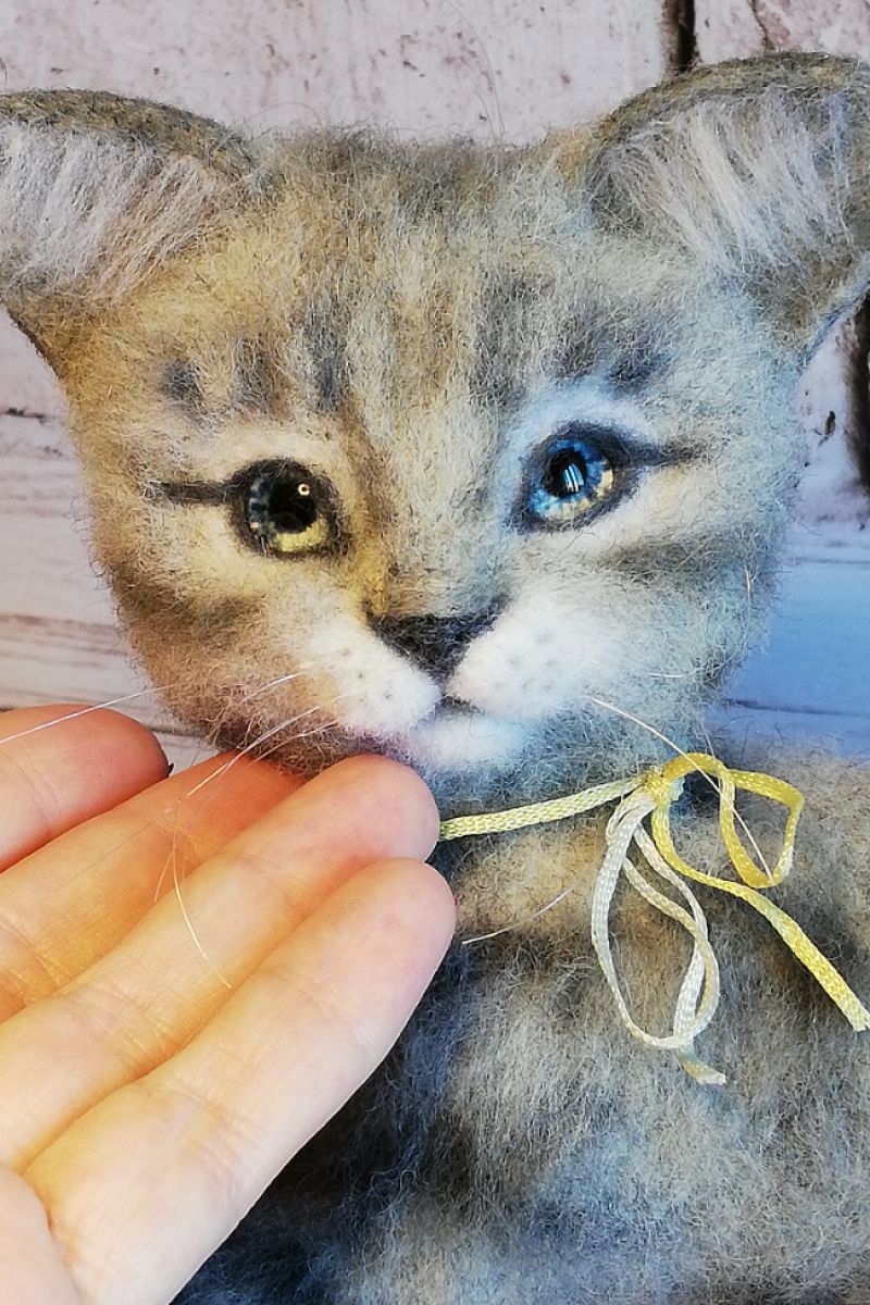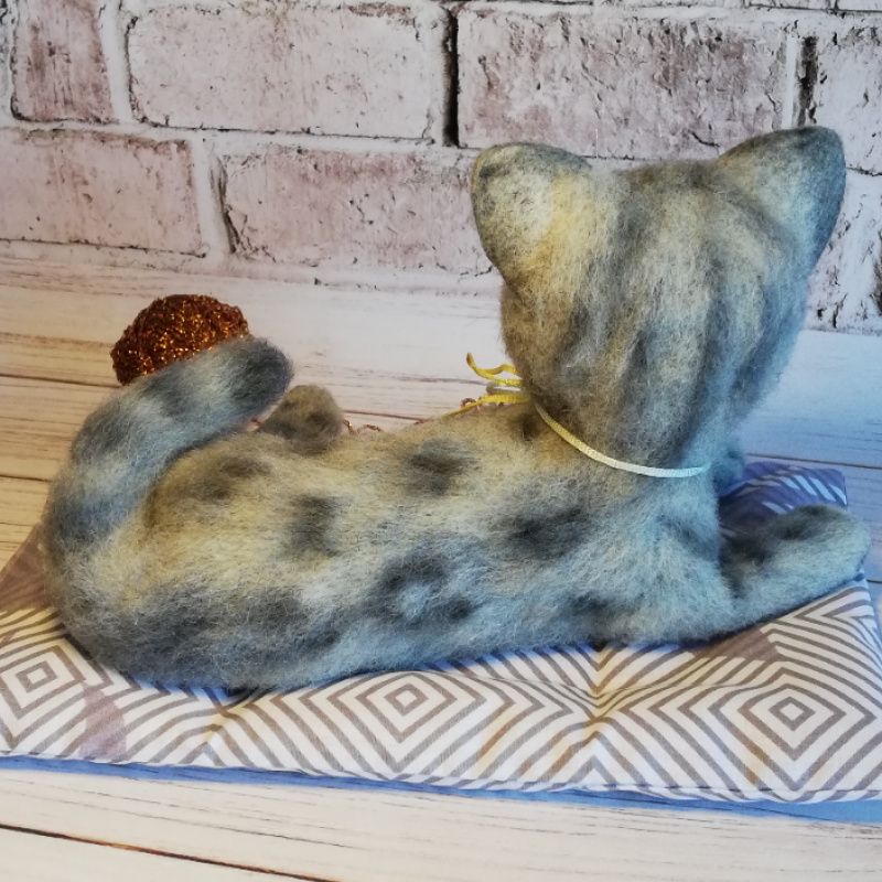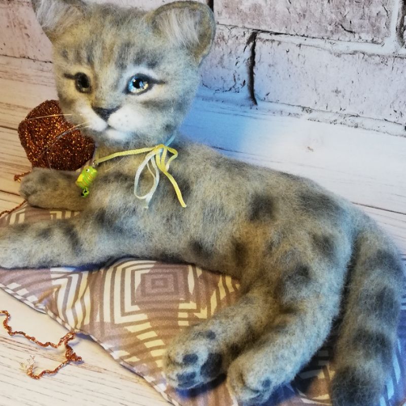 Валяный, серый, бенгальський котенок. 22 см нежности от кончиков передних лапок и до хвостика. А хвостик у него подвижный, можно менять положение. Выполнен из 100 %овечьей шерсти