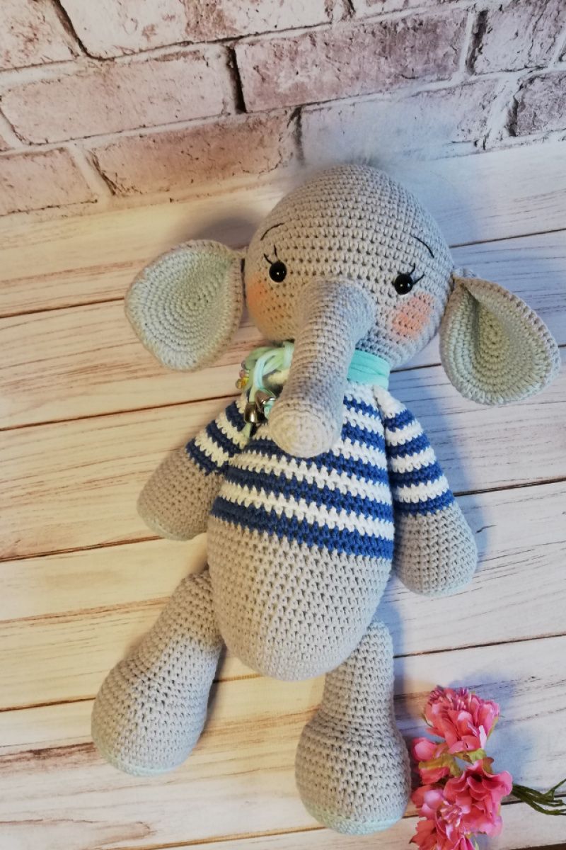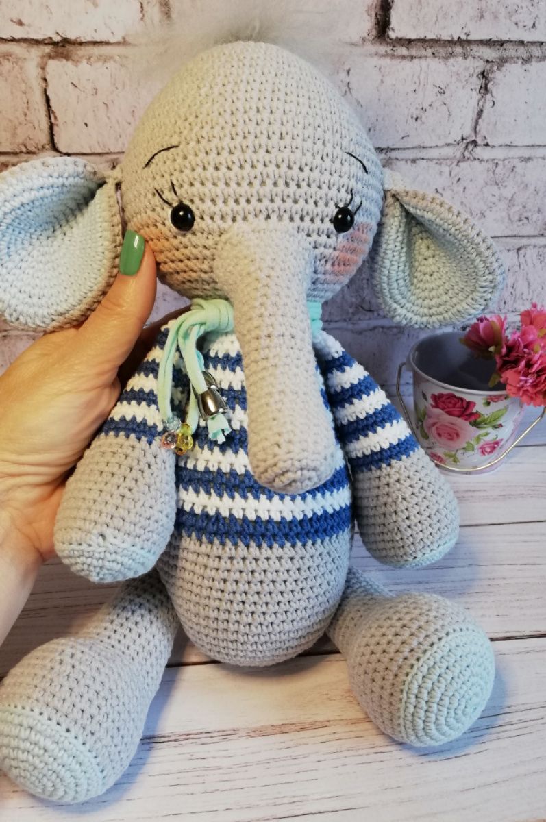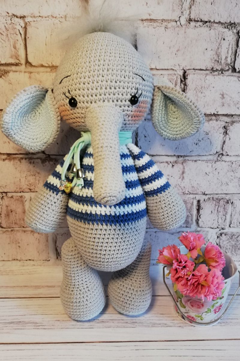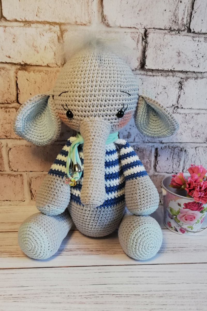 Слонёнок Боня связан из пряжи YarnArt jeans, наполнитель холлофайбер, рост 35 см, глазки на безопасном креплении.