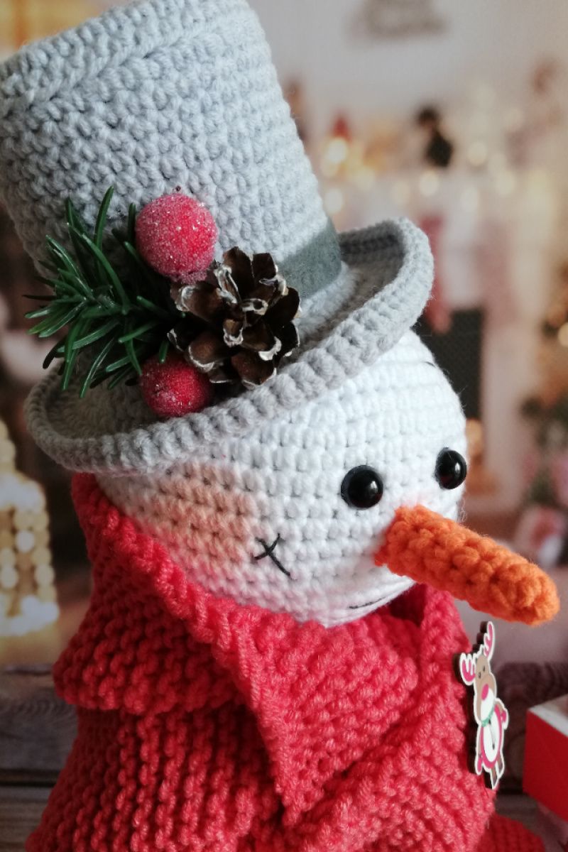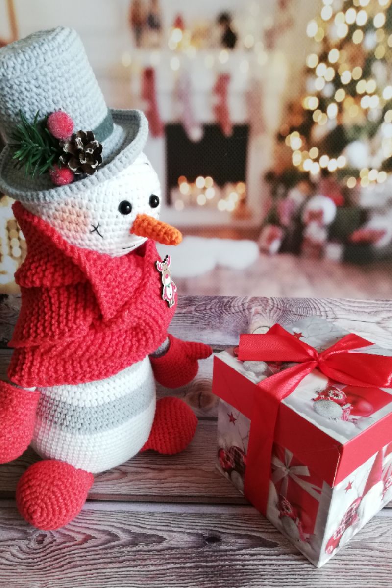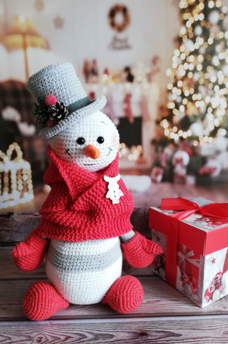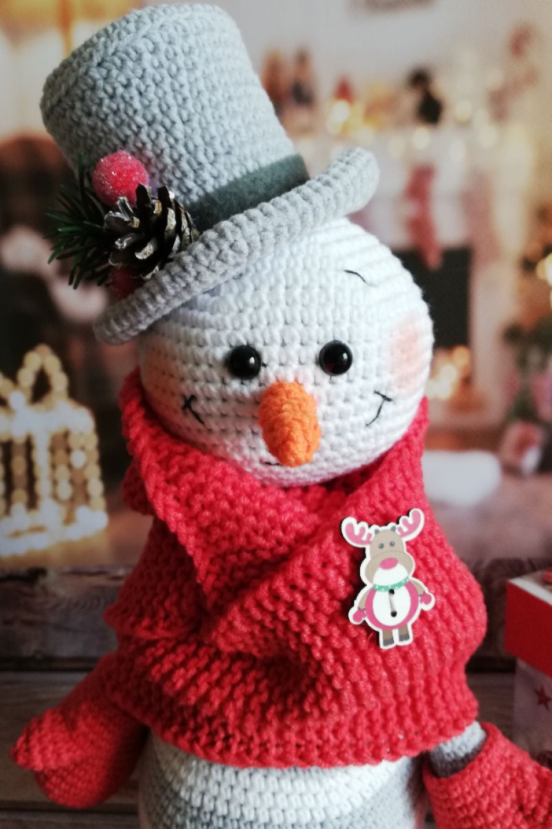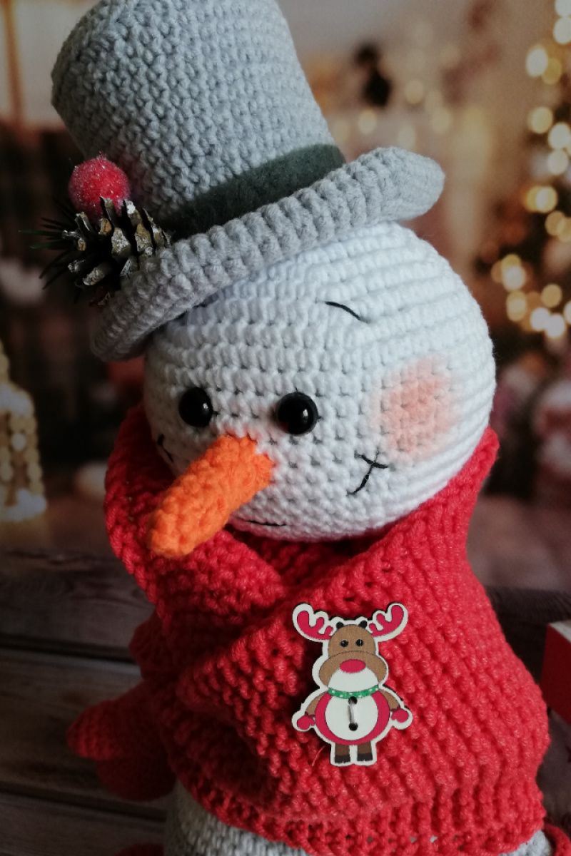 Новогодний декор - весёлый снеговичок. Рост 30см вместе со шляпой, глазки на безопасном креплении. Основание утяжелено гранулятом для устойчивости и придания лёгкой тяжести игрушке.
