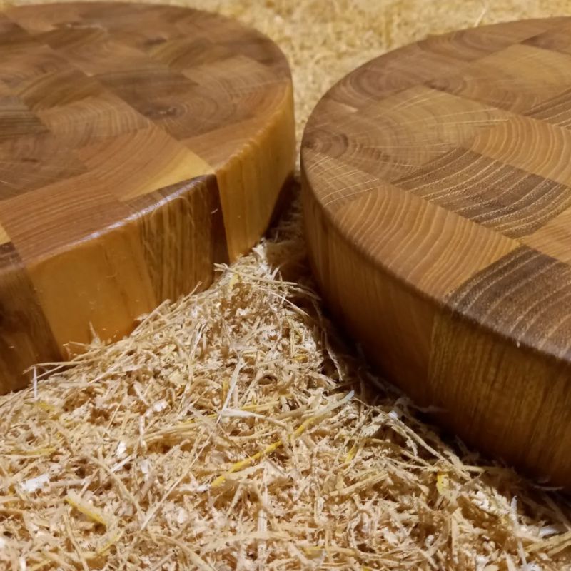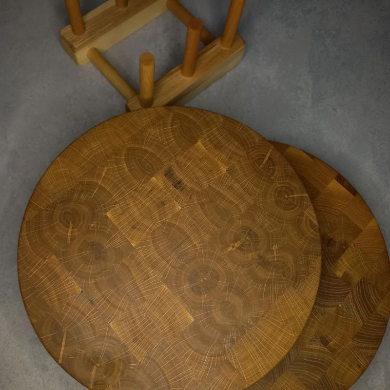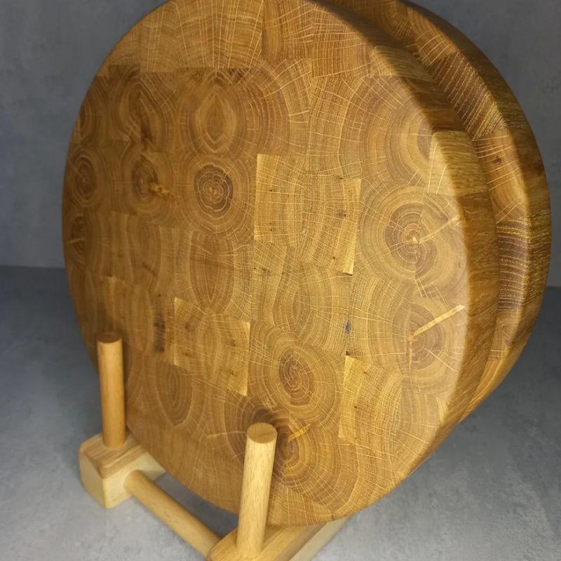 Доска из дуба, пропитана масло воском, комплектуются силиконовыми ножками.Тарцовые разделочные доски очень практичные и долговечные тем, что торцы спилов на такой разделочной доске расположены таким образом, что даже при интенсивной резке очень острым ножом, волокна не разрубаются. Они смыкаются в местах повреждений. Такие доски в основном используют для рубки и резки мяса, рыбы.