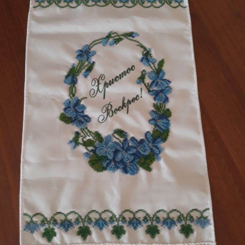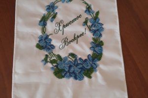 Красивый и нежный полотенце на пасхальный кошик.Видшитий чешским бисером, обработанный мереживом.Для подарка маме, сестре или жене