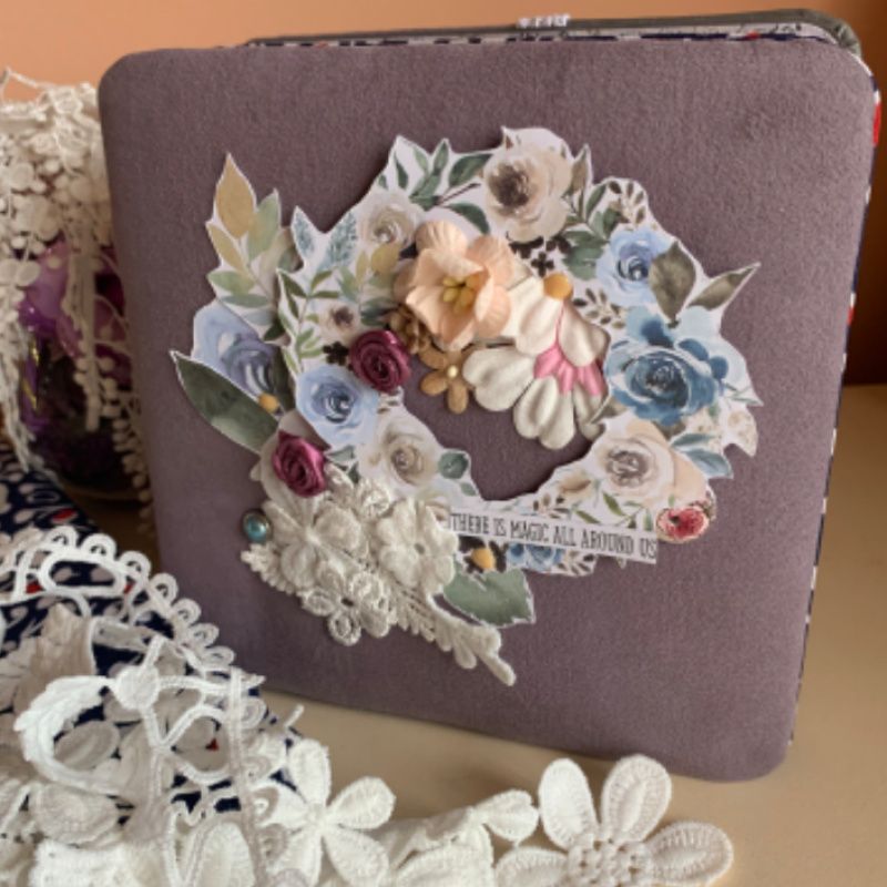 Мини-альбом в сиренево-синих тонах, подойдет в подарок для юной леди, так и для семейной пары. Альбомчик в наличии, вмещает фото форматом 9 * 13. Будет хранить, например, воспоминания хорошо проведенного времени с близким людьми.