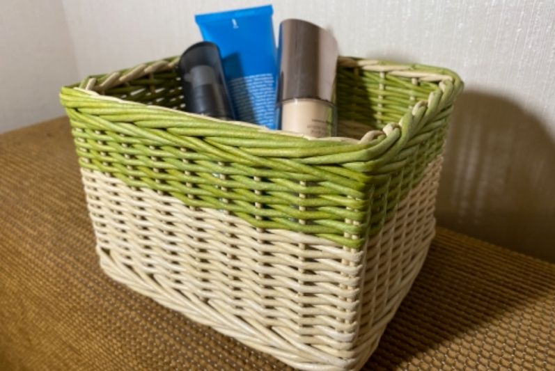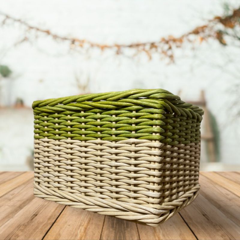 Особенность изделия цветной край, который хорошим акцентом впишется в интерьер. Основа из картона, чтобы мелкие вещи не смогли убежать