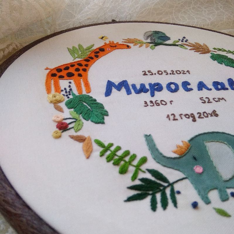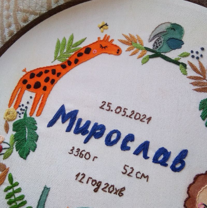 Вышита детская метрика. Прекрасная идея для подарка на крещение или первый день рождения. Станет не только украшением детской комнаты, но будет напоминать родителям о самом важном событии их жизни.