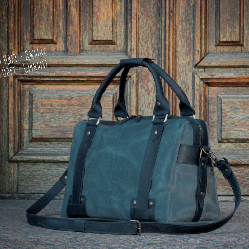 Мужской саквояж SyleMen из винтажной кожи цвета Джинс + синий
