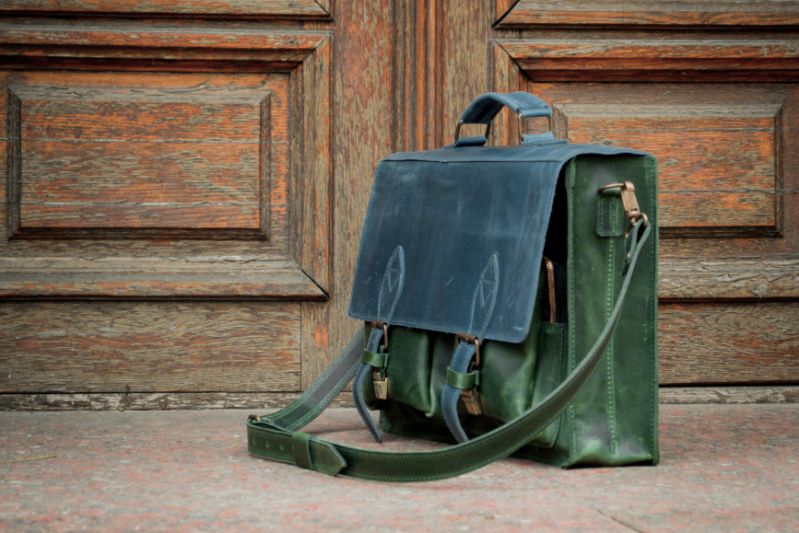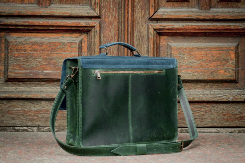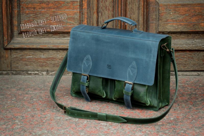 - винтажная телячья кожа Crazy Horse зеленого цвета;