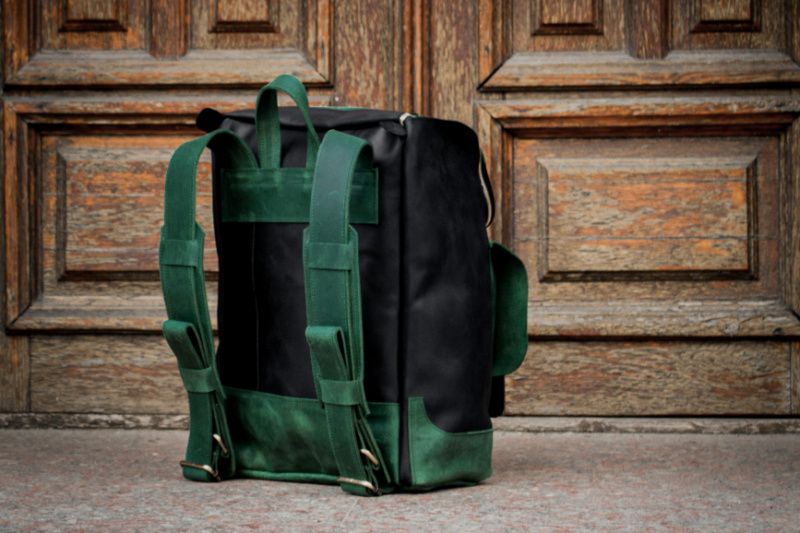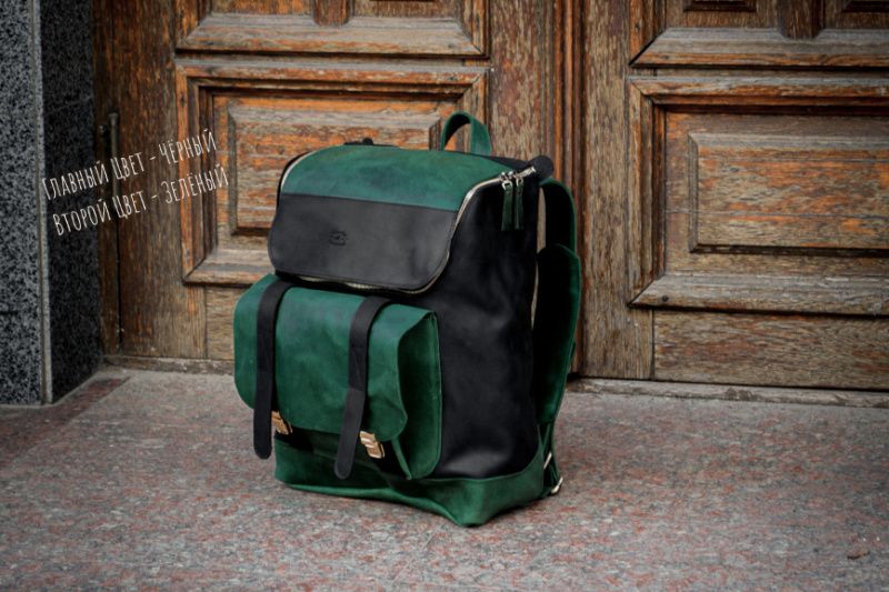 Рюкзак "Калифорния" выполнен в строгом стиле из черной винтажной и зеленой кожи Crazy Horse. Рюкзак создан для городского использования и недолгих поездок или перелетов, вмещает набор необходимых вещей + ноутбук до 15 дюймов.
