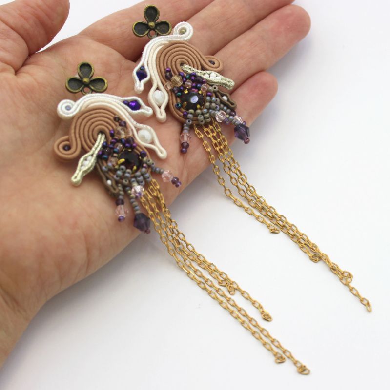 Эти роскошные серьги преобразят ваш образ! Выполнены из качественных материалов, все детали аккуратно сшиты между собой. Изнанка из натуральной кожи, фурнитура из нержавеющей стали.