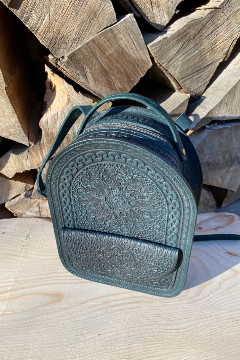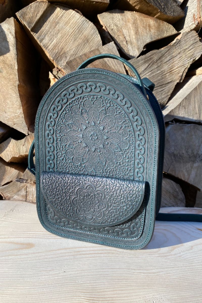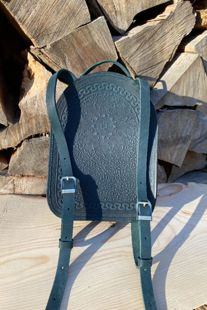 Рюкзак "Талисман" выполнен из натуральной кожи ручной работы. Украшенный узором солнца. Оригинальный и стильный. С верху есть ручка и ремешки, которые регулируются. Внутри одно отделение и один внешний карман на магните. Доступен для заказа в различных цветах!