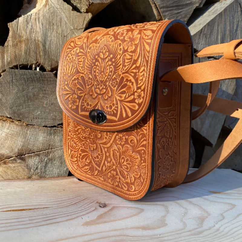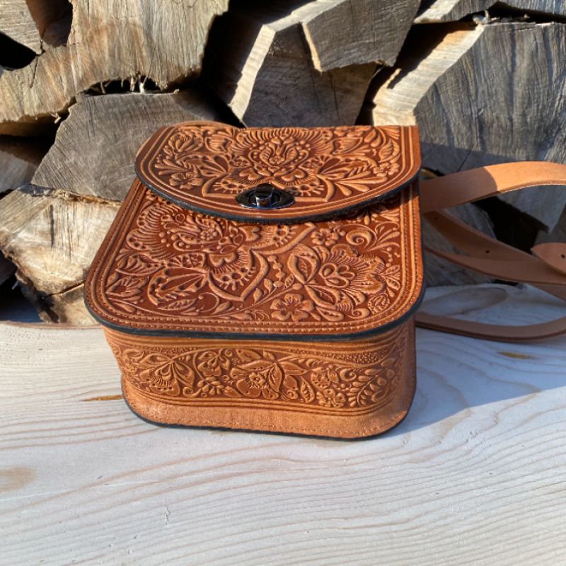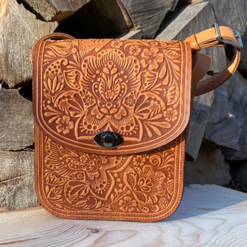 Вашему вниманию сумочка "Любисток". Изготовлена из натуральной кожи. Прямоугольная форма сумочки делает ее более практичной и вместительная. Цвет рыжий. Внутри есть два кармашка, один из них на замочке. Доступна для заказа в различных цветах.