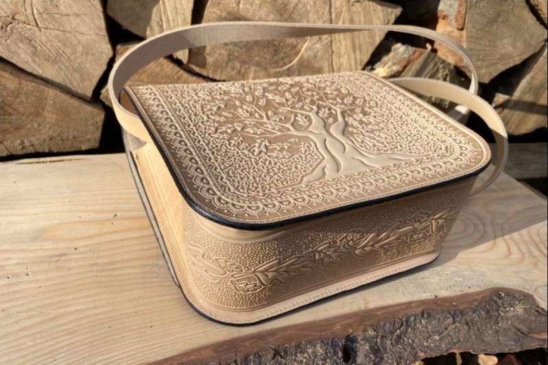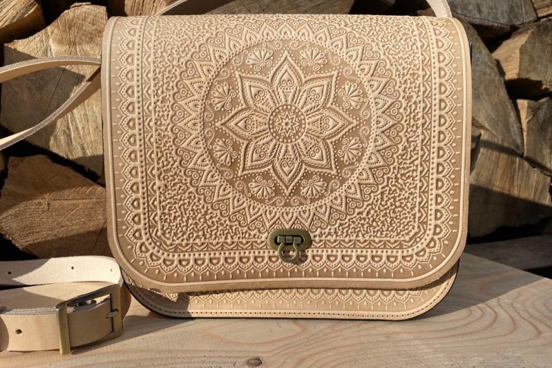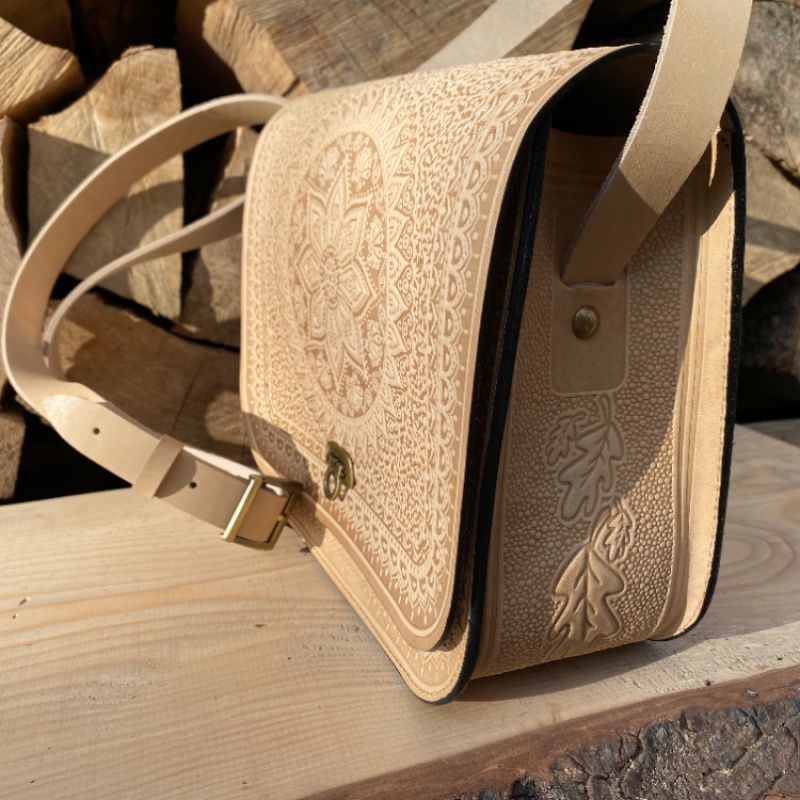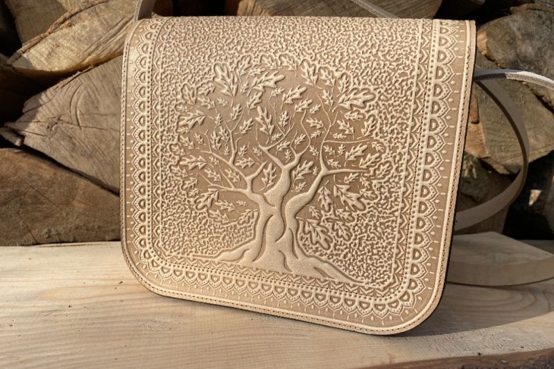 Внутри 2 боковые кармашки. Ремень через плечо регулируется. Практическая и вместительная. Сумочка с содержанием: тисненая Солнце-талисман от неудач и бед, а Дерево-е символом прибыли и плодородия! Многообразие цветов нашей палитры дает возможность изготовить сумочку, которую Вы хотите !!!.