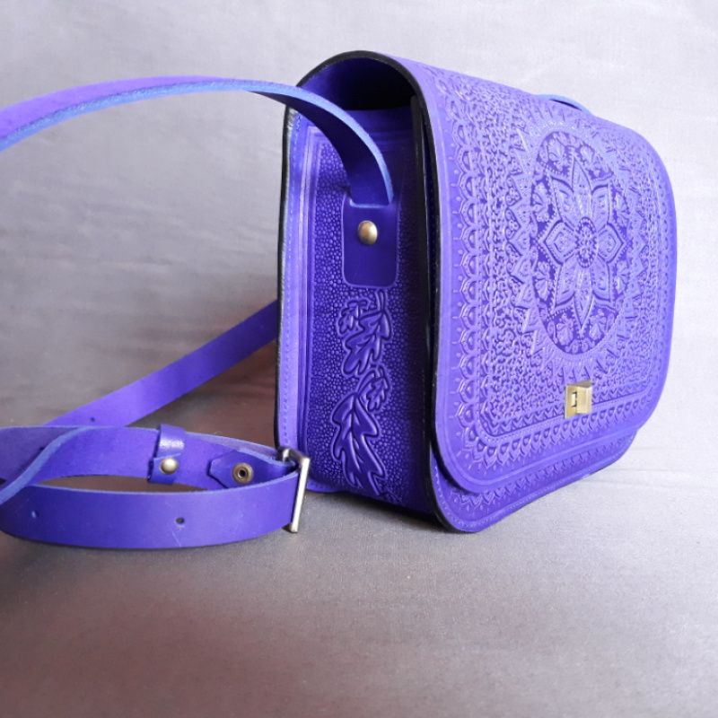 Внутри 2 боковые кармашки. Ремень через плечо регулируется. Практическая и вместительная. Сумочка с содержанием: тисненая Солнце-талисман от неудач и бед, а Дерево-е символом прибыли и плодородия! Многообразие цветов нашей палитры дает возможность изготовить сумочку, которую Вы хотите !!!.