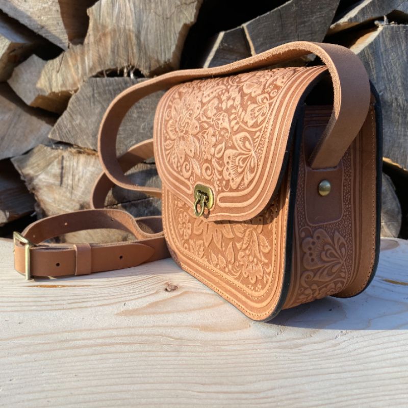Сумочка "Цветок" с натуральной кожи. Очень нежная и элегантная .Оздоблена орнаментом из замечательных цветов. Внутри одна кармашек. Наплечный ремень (регулируется). Края прополированную и прорезиненные, что предотвращает быстрое изнашивание. Качественная фурнитура. Многообразие цветов нашей палитры дает возможность изготовить сумочку, которую Вы хотите !!!.