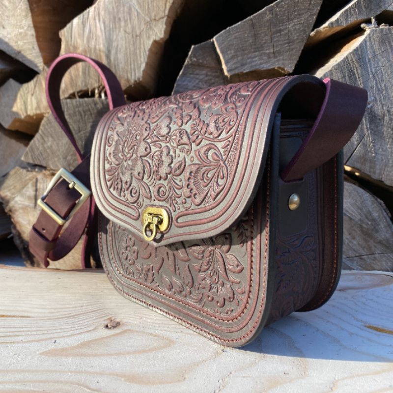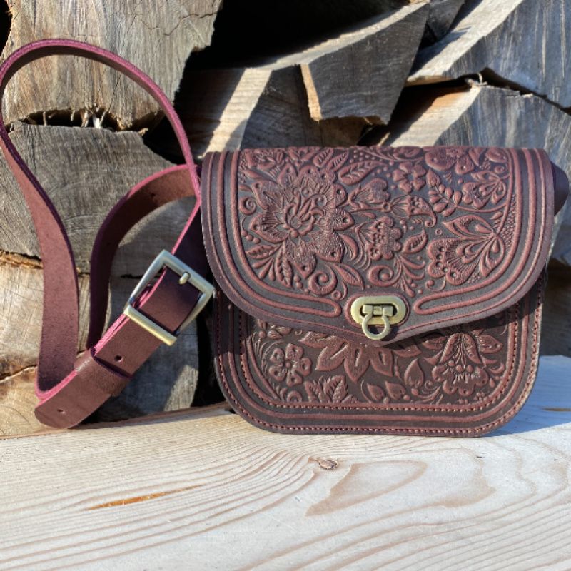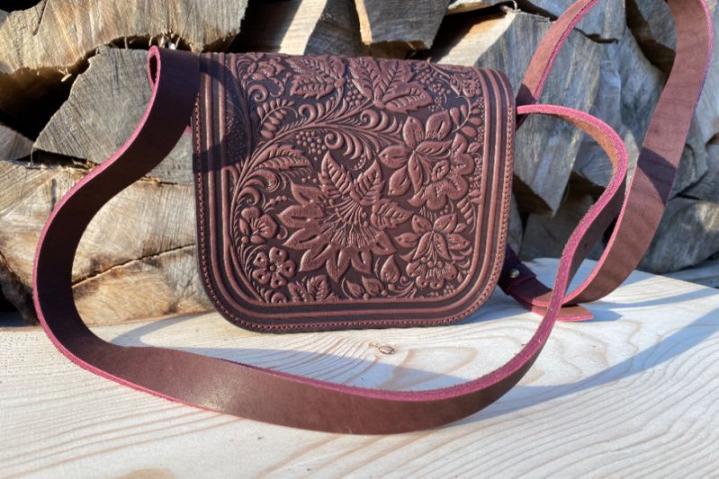 Сумочка "Цветок" с натуральной кожи. Очень нежная и элегантная .Оздоблена орнаментом из замечательных цветов. Внутри одна кармашек. Наплечный ремень (регулируется). Края прополированную и прорезиненные, что предотвращает быстрое изнашивание. Качественная фурнитура. Многообразие цветов нашей палитры дает возможность изготовить сумочку, которую Вы хотите !!!.