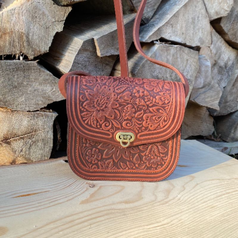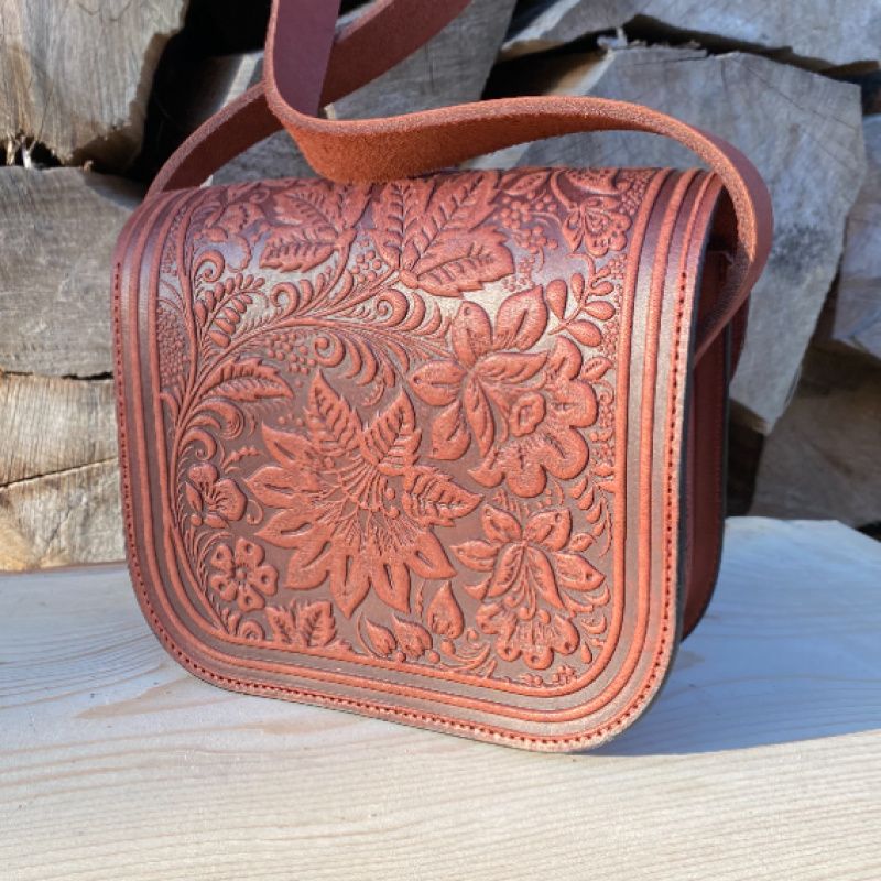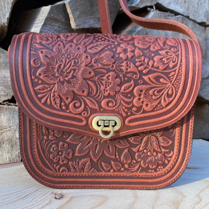 Сумочка "Цветок" с натуральной кожи. Очень нежная и элегантная .Оздоблена орнаментом из замечательных цветов. Внутри одна кармашек. Наплечный ремень (регулируется). Края прополированную и прорезиненные, что предотвращает быстрое изнашивание. Качественная фурнитура. Многообразие цветов нашей палитры дает возможность изготовить сумочку, которую Вы хотите !!!.