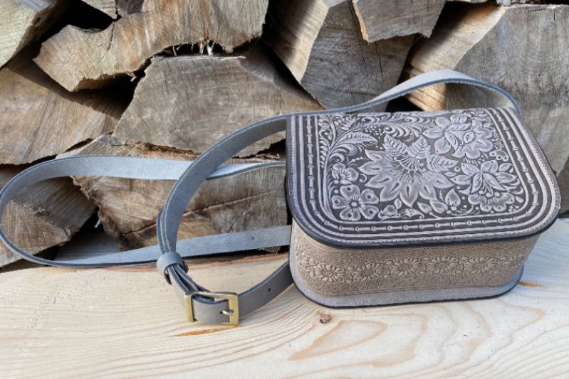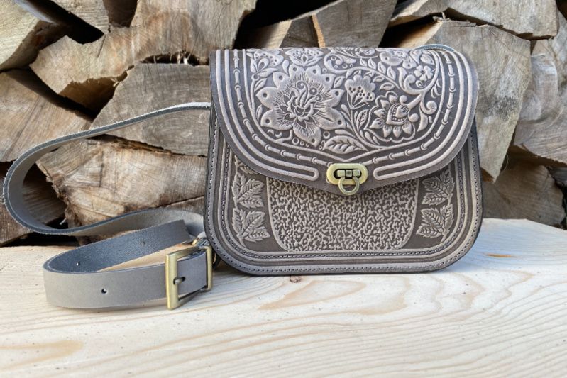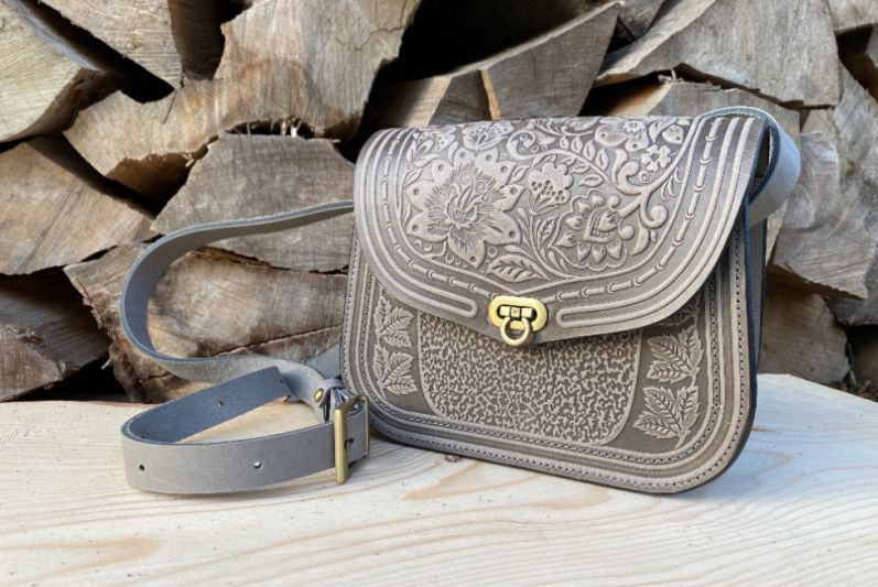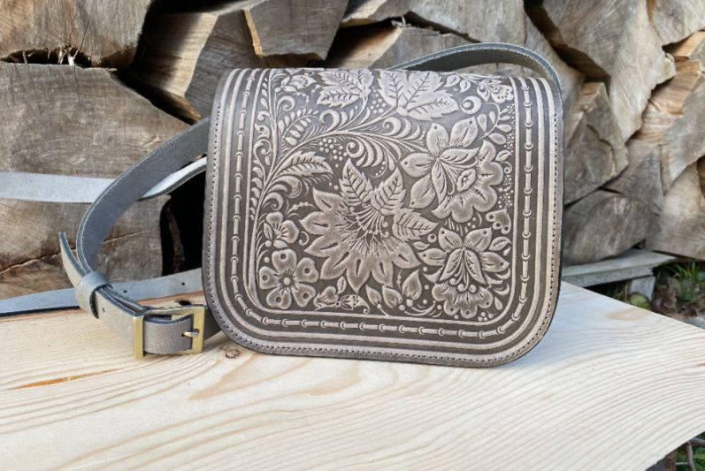 Сумочка ручной работы изготовлена из натуральной шкири.Головною особенностью кожи является долговечность, прочность и неповторимый шарм. Стильная и оригинальная. Украшенная орнаментом цветов. В середине одна карман и вместительное отделение. Качественная фурнитура.Реминь регулируется пряжкою.Краи прополированную и прорезиненные, что предотвращает быстрое изнашивание. Возможно исполнение в других цветах.