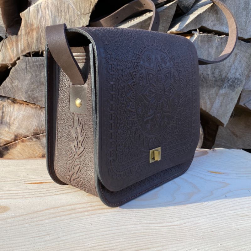 Вашему вниманию Сумочка "Солнце Карпат". Изготовлена из натуральной кожи Внутри 2 боковые кармашки. Ремень через плечо регулируется. Практическая и вместительная. Сумочка с содержанием: тисненая Солнце-талисман от неудач и бед, а Дерево-е символом прибыли и плодородия! Многообразие цветов нашей палитры дает возможность изготовить сумочку, которую Вы хотите !!!.