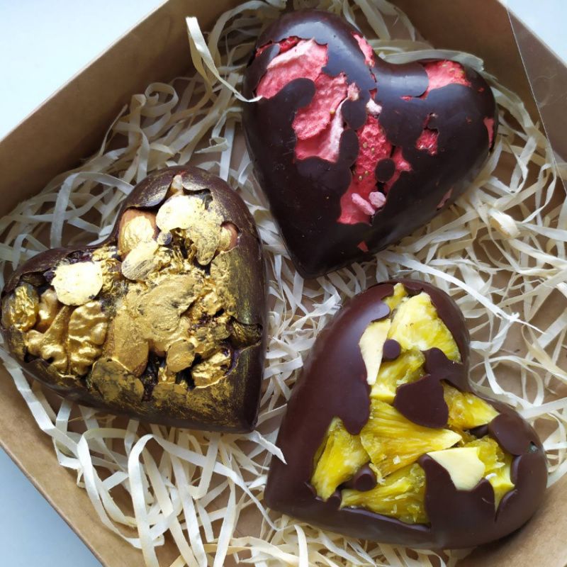 Натуральный шоколад. Мед с нашей пасеки + сухофрукты и орешки. Цена за 3 сердечка с упаковкой.