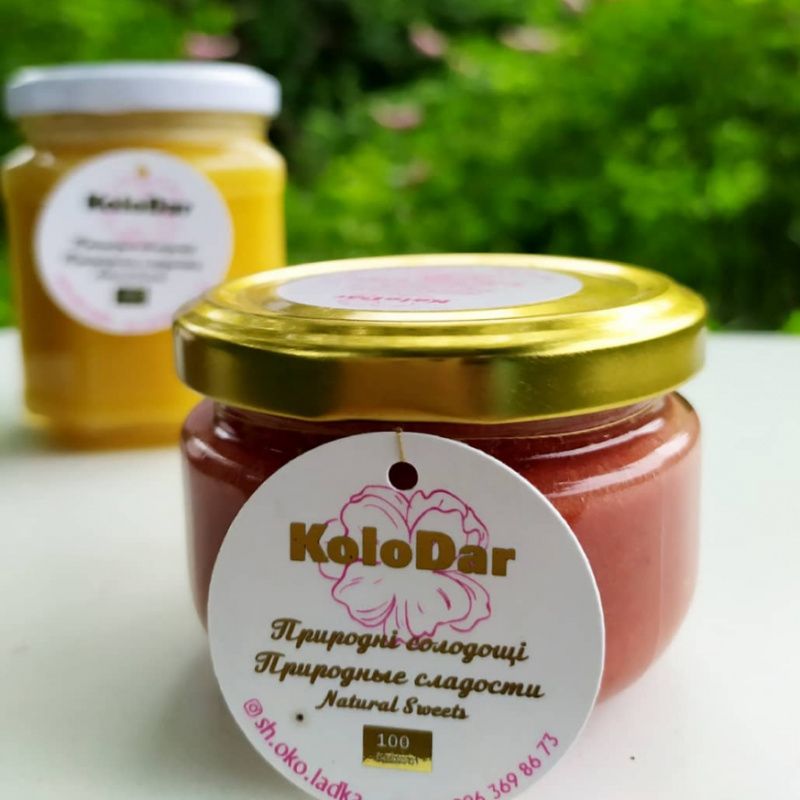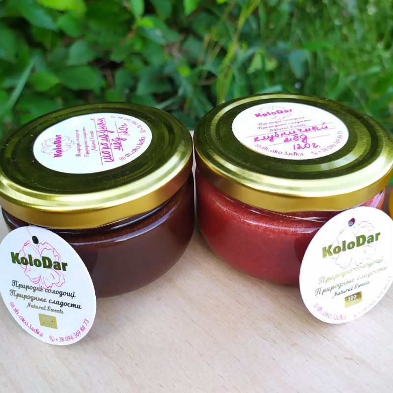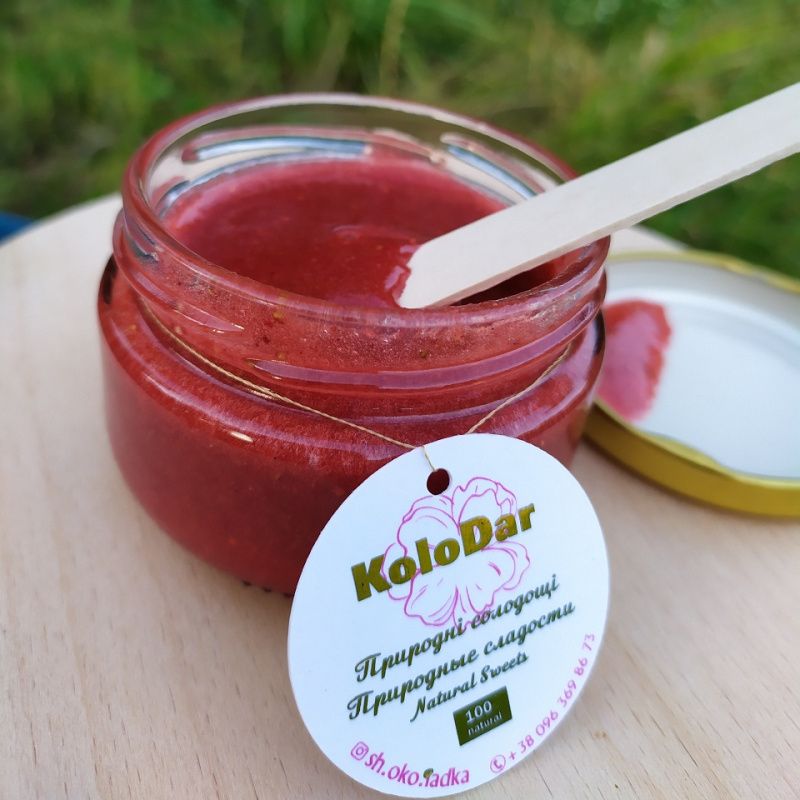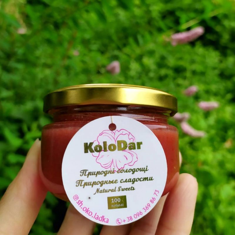 Мед с нашей пасеки. Состав натуральный шоколад и натуральная клубника.