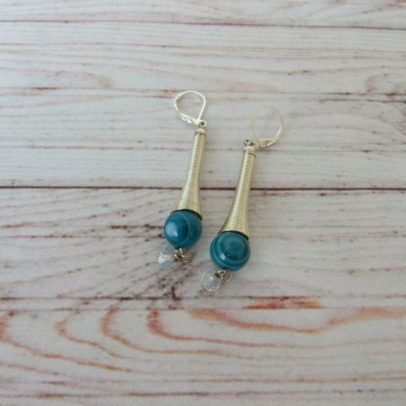 Нежные серьги, выполненные из бусин агата, природного камня, который приносит своей обладательнице здоровья ", долголетия, щастя.Виконани на серебряной застежке