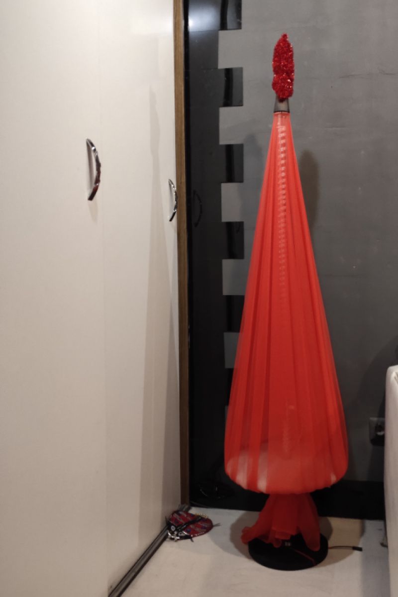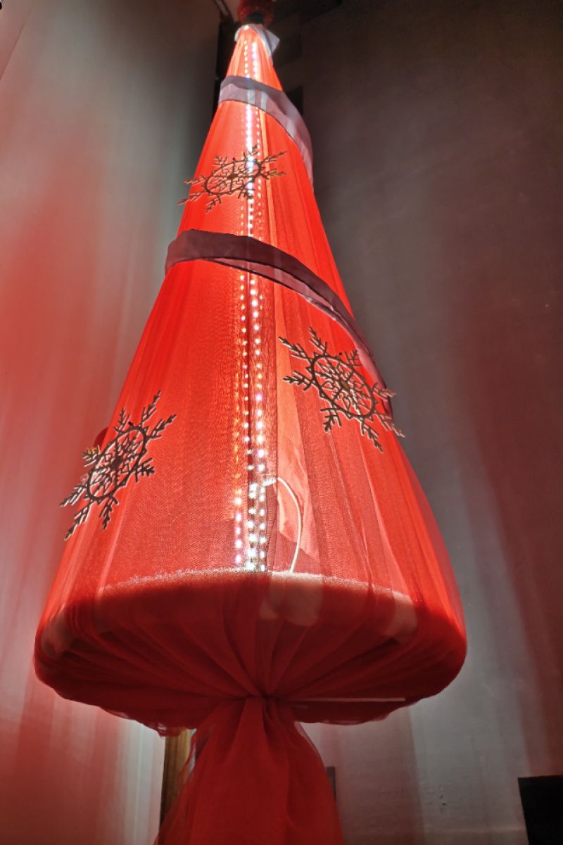 На верхушке, есть площадка для установки новогоднего или декоративного украшения.