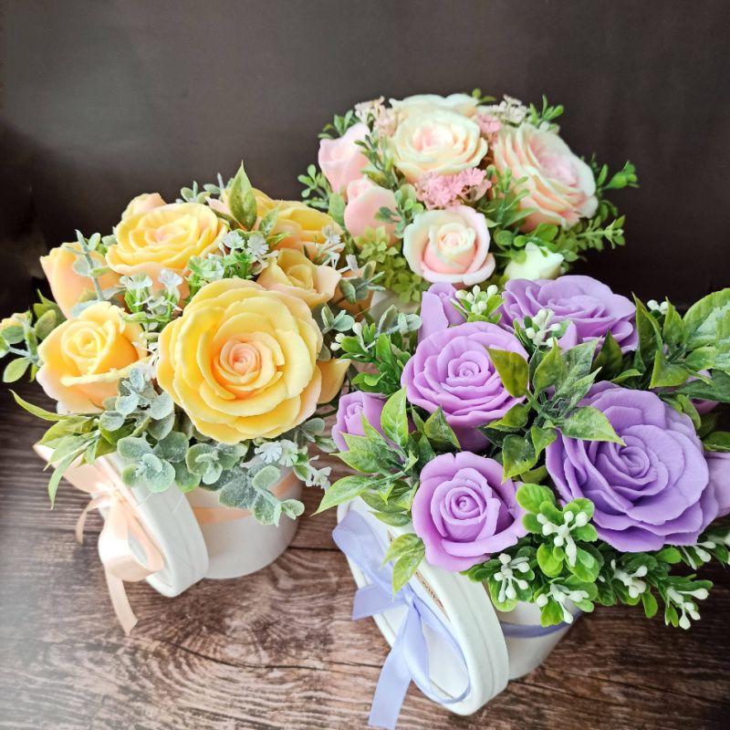 Букет из мыла ручной работы с ароматными розами. Цвет на ваш вкус. Упаковано в прозрачный пакет перевязанный атласной лентой и биркой и дополнительно в крафт пакет с ручками