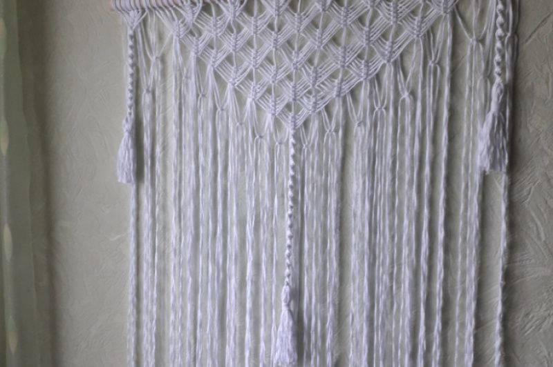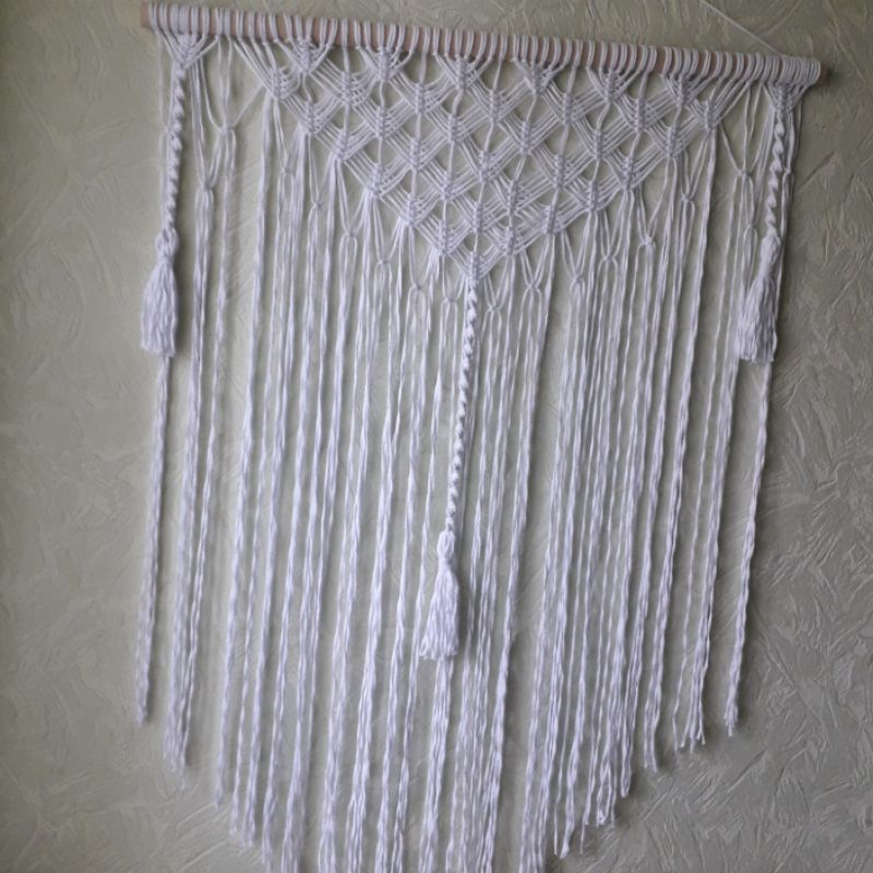 Настенное панно макраме, ручная авторская работа. Ширина по планке 65 см, высота 95 см.