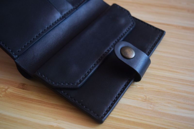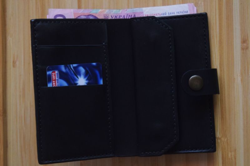 Функционал: - 3 отделения для карт (однако может поместить в одном две-три карты); - отделение для монет на кнопки; - большое отделение для купюр - внутренний карман (под отделениями для карточек). - весь кошелек запирается на металлическую кнопку. Размер: 13 х 9 см Материал: натуральная телячья кожа. Доставка и оплата Отправка Новой почтой, Укрпочтой. Оплата на карту или при получении. Постоянным клиентам дарим приятные скидки на следующие покупки =).