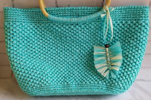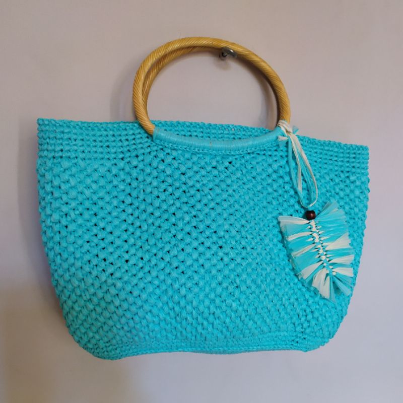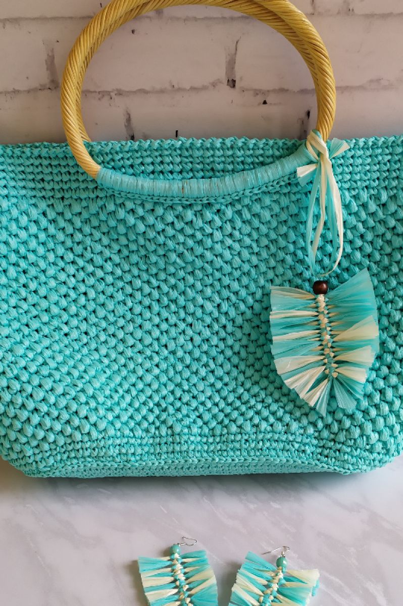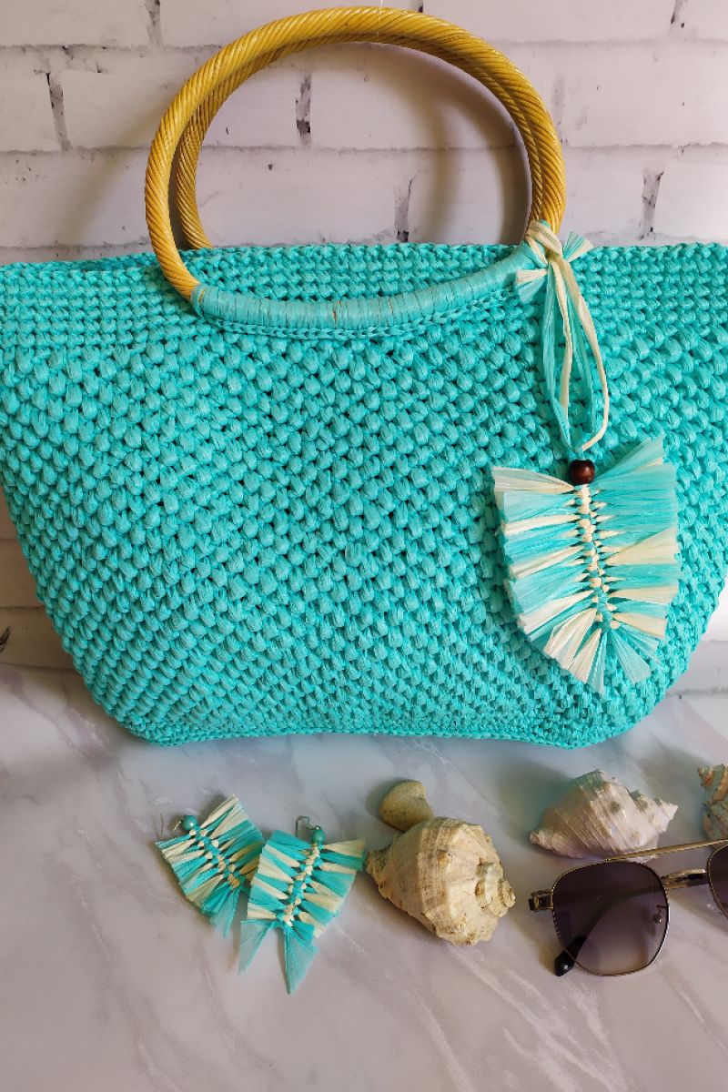 Сумка из рафии с бамбуковыми ручками. Серьги из рафии в подарок