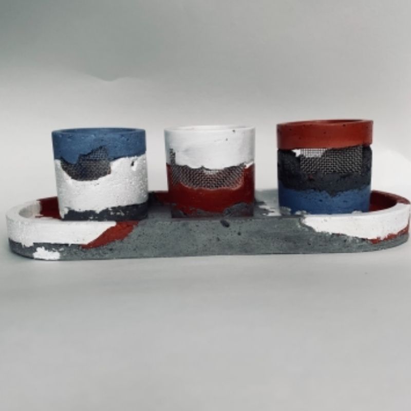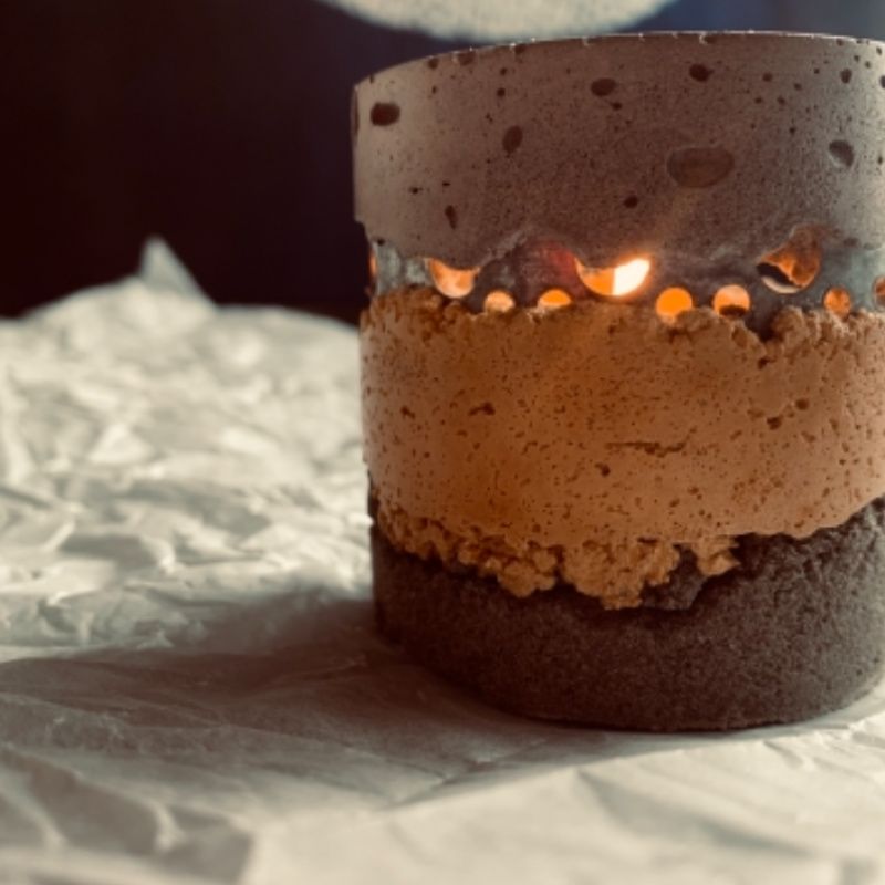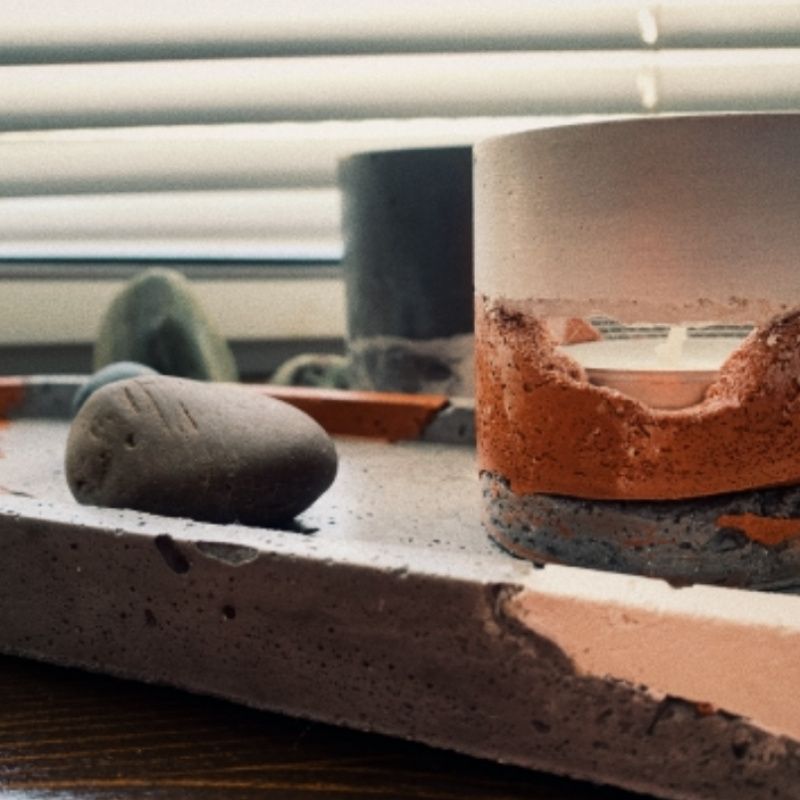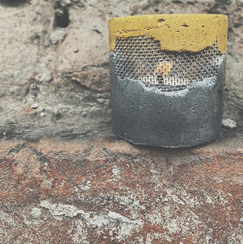 Бетонный подсвечник с арматурой для чайной свечи.