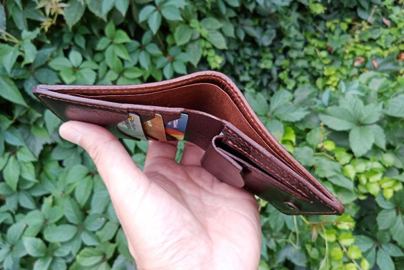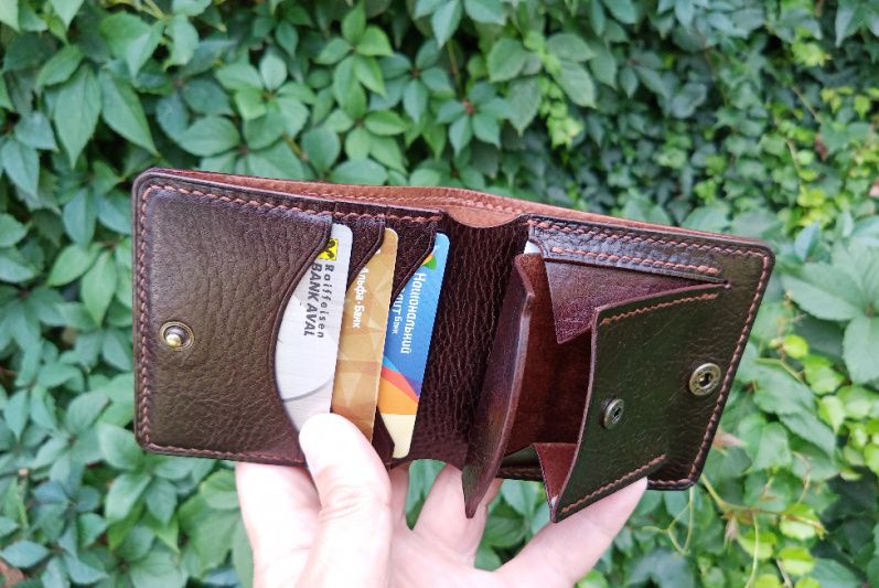 за монетницей удобный отдел для чеков, записок-напоминалок и проч. также помещаются и пластиковые карты.