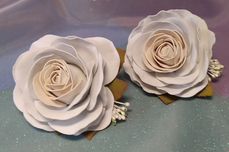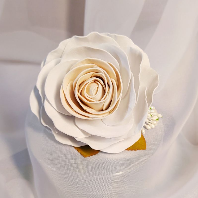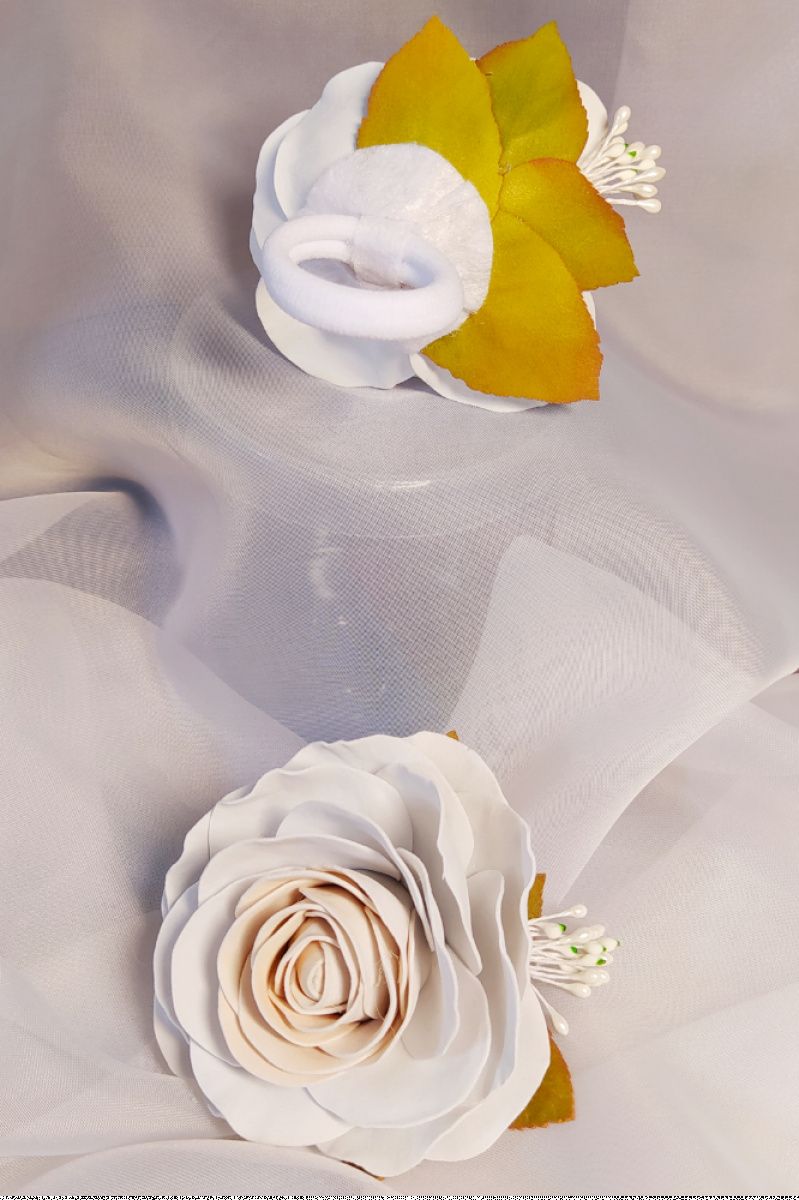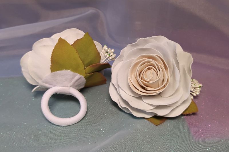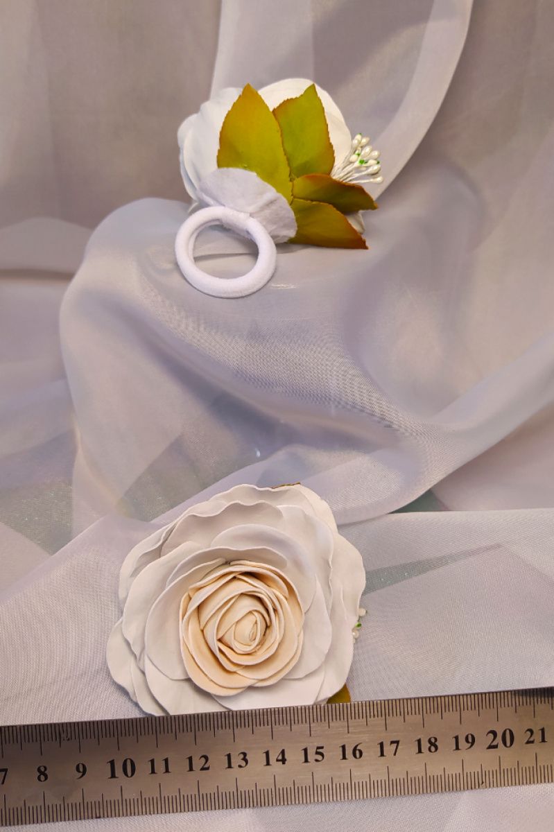 Белые розочки на резиночке отлично дополнят любой романтичный образ, придадут лёгкости и нежности обладательнице.