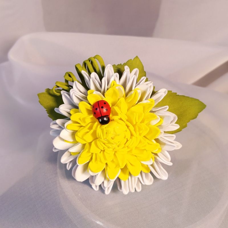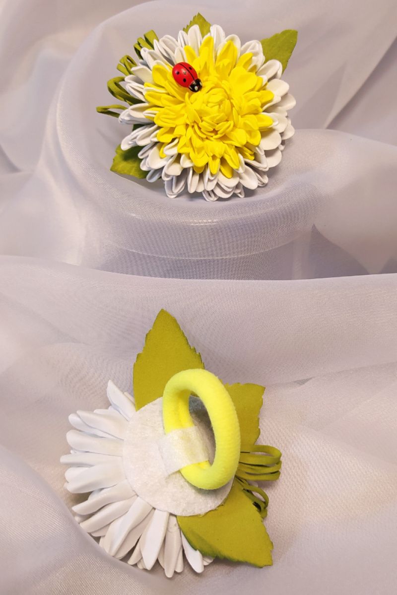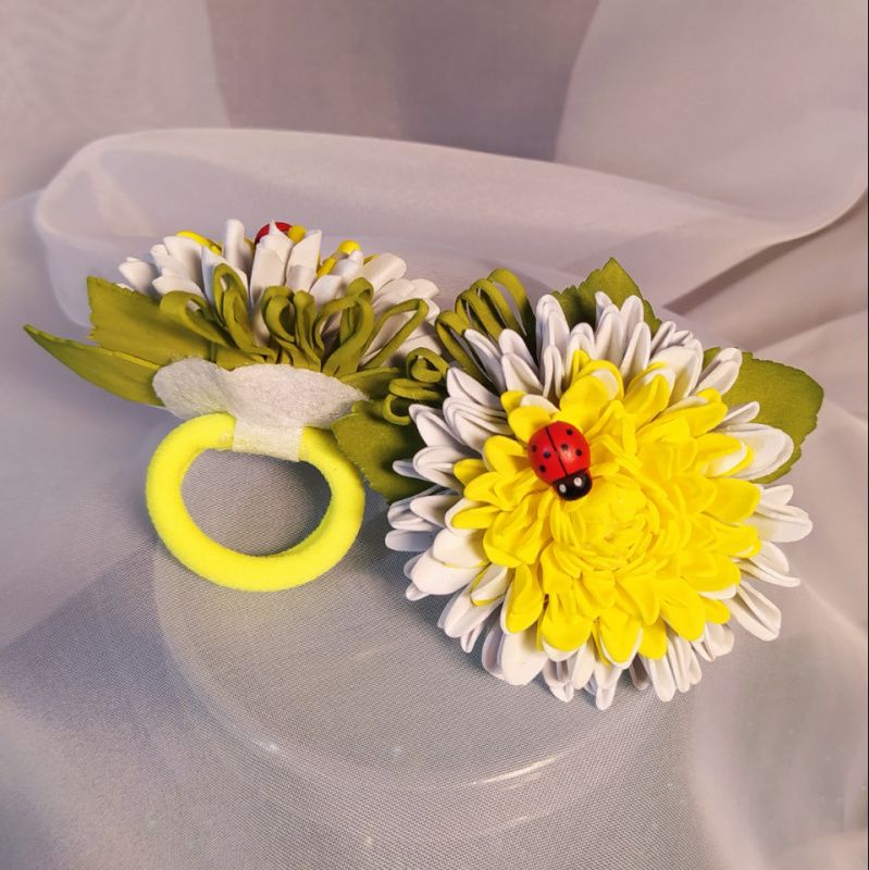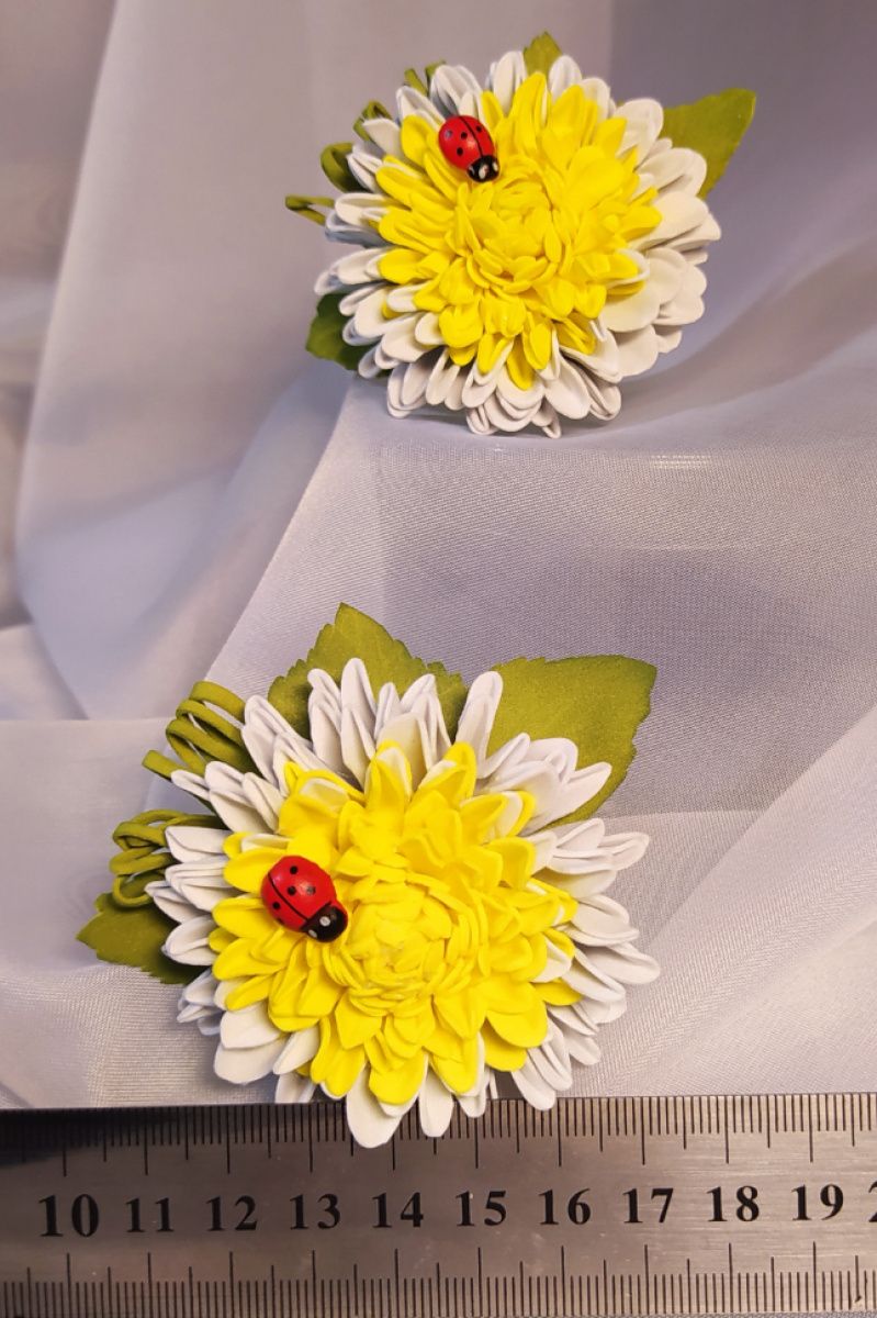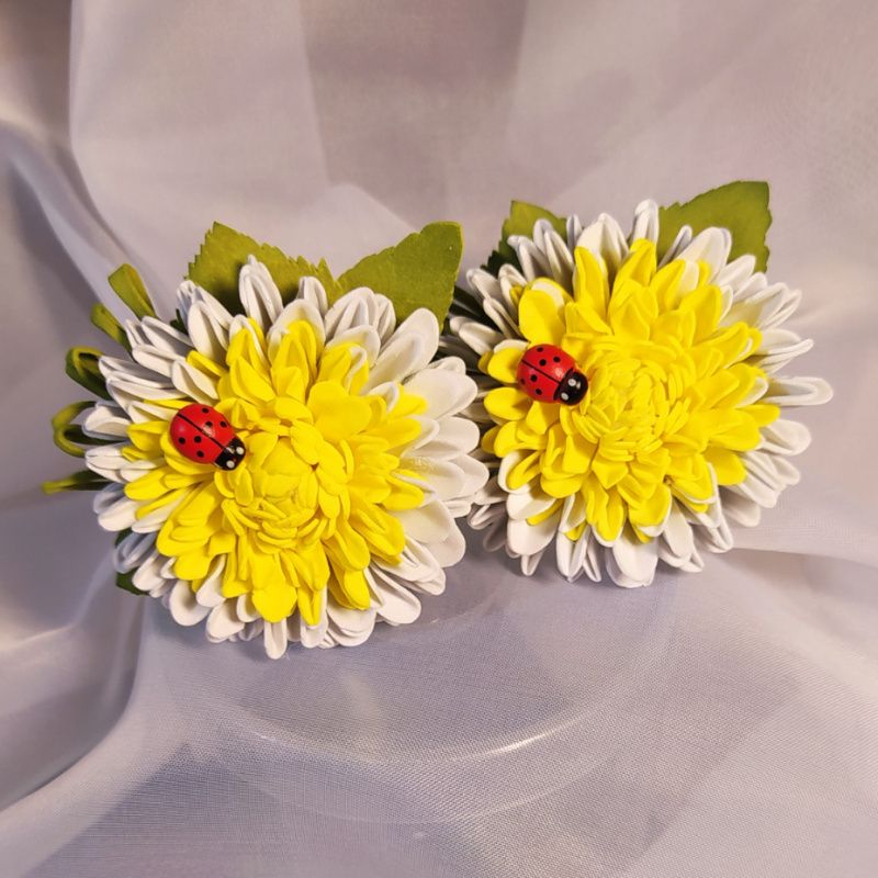 Яркие солнечные хризонтемы идеально подойдут под любую прическу, так же не применно придадут немножко солнечного настроения.