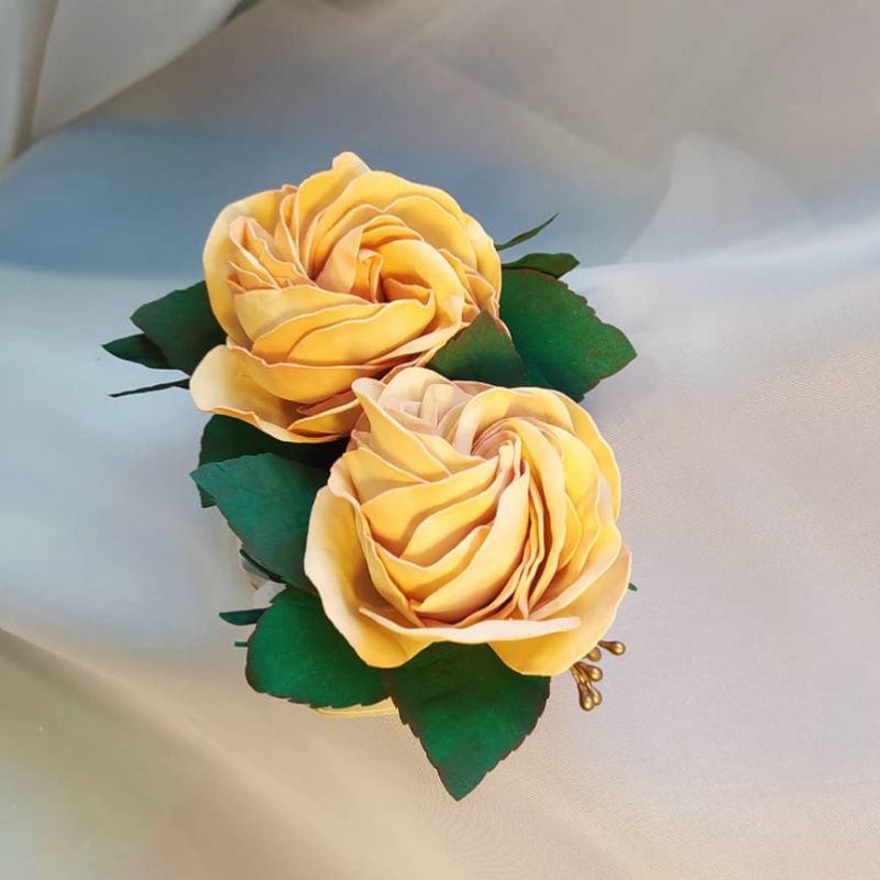 Шикарная, нежная, не обычная роза, очень елегантно и ненавязчиго будет смотреться на любой прическе в любое время года.