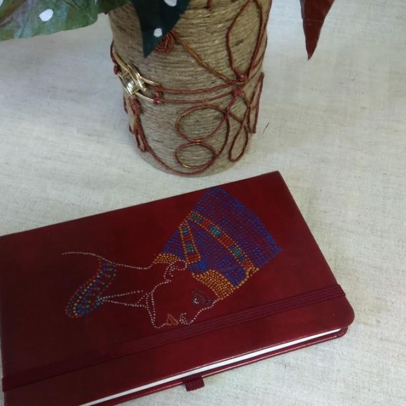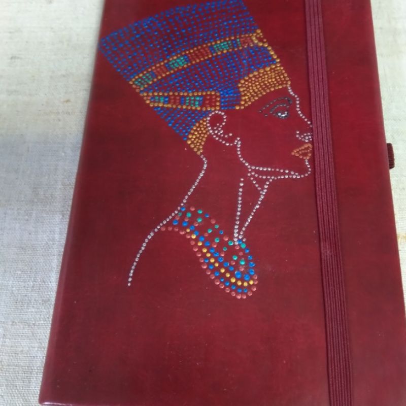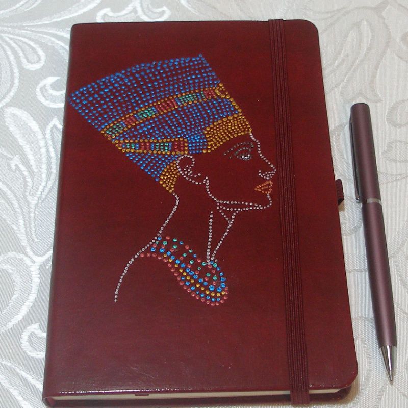 Записная книжка в твердом переплете 125 * 195 мм, 95 листов кремового цвета в клеточку. На тыльной форзаце карман. Весь блок фиксируется резинкой, Внешнее крепление для авторучки. Авторское оформление обложки. + Шариковая ручка.