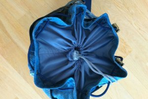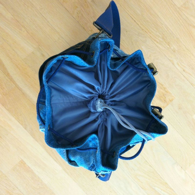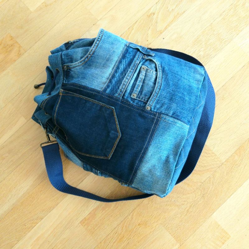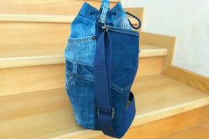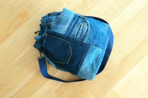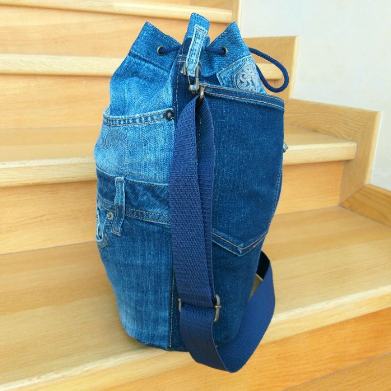 Джинсовая сумка на ремне, удобная, вместительная. Держит форму. Имеет многочисленные наружные карманы. Внутри 3 кармана для мелочей, один из них на молнии.