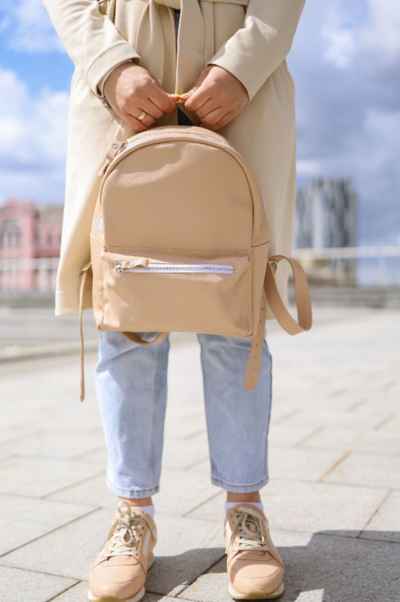 Небольшой городской рюкзак выполнен из мягкой кожи.