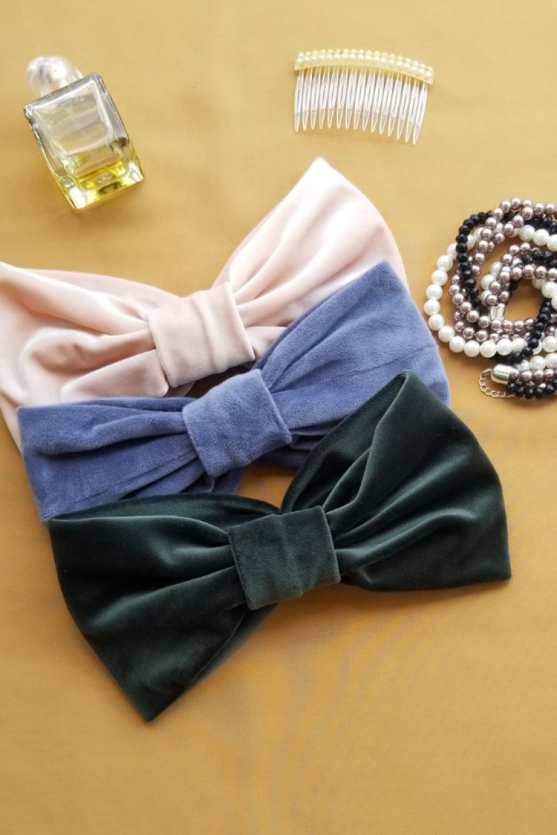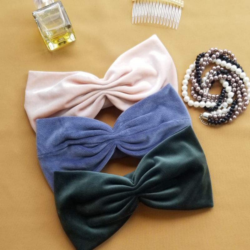 Ткань бархат. Размеры универсальные. Одна сторона повязка-бант, другая со складками.