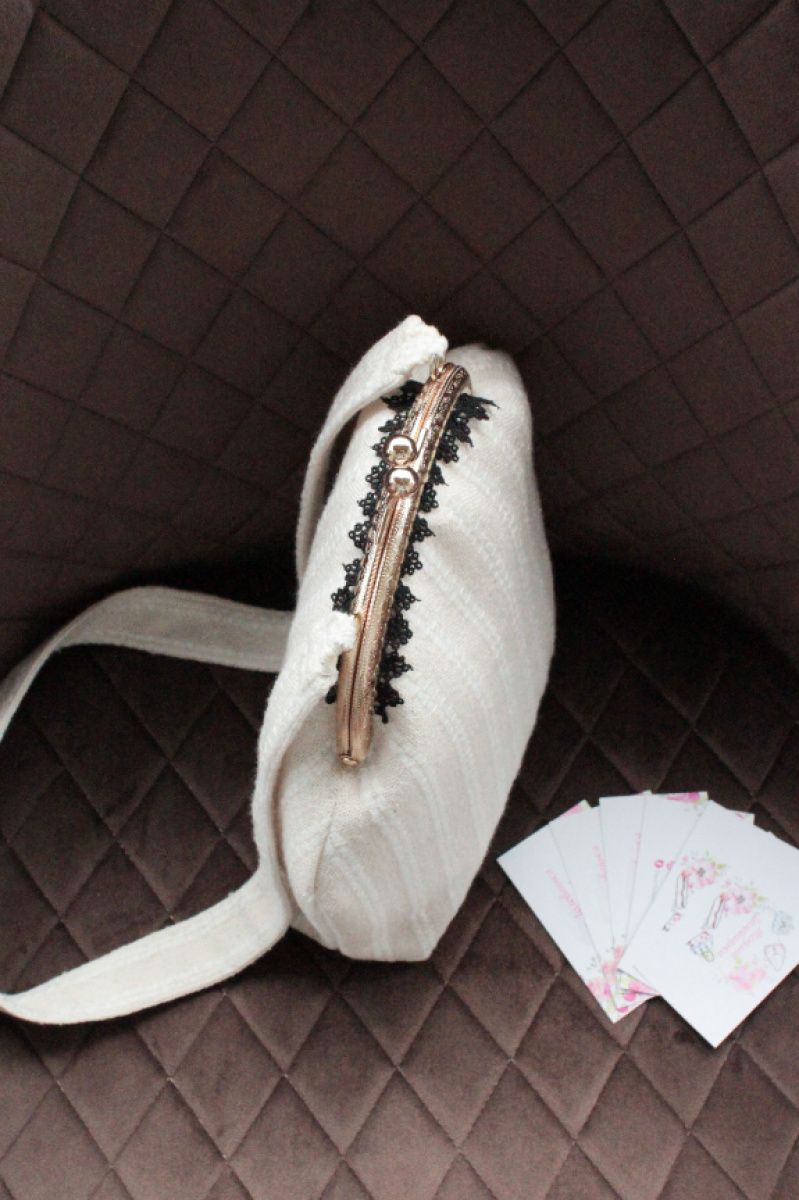 Сумка с джутовой ткани цвета айвори. Хорошо держит форму. Тканевый ремешок 100 см длиной. Фермуар 16 см. Внутри подкладка ткань креп. Декоративное кружево.