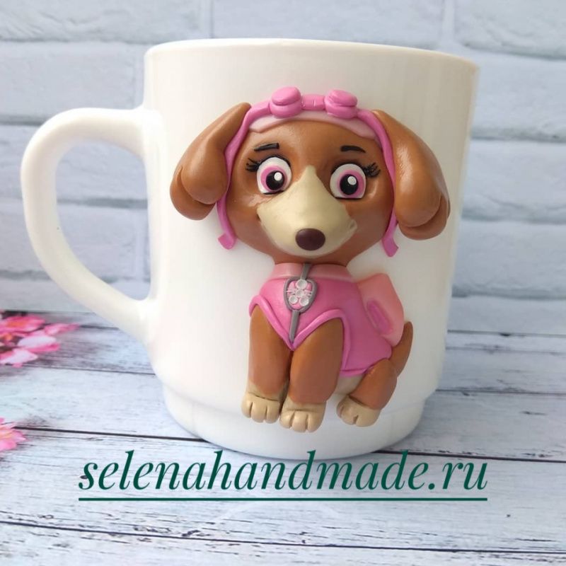 Чашка ручной работы с декором из полимерной глины